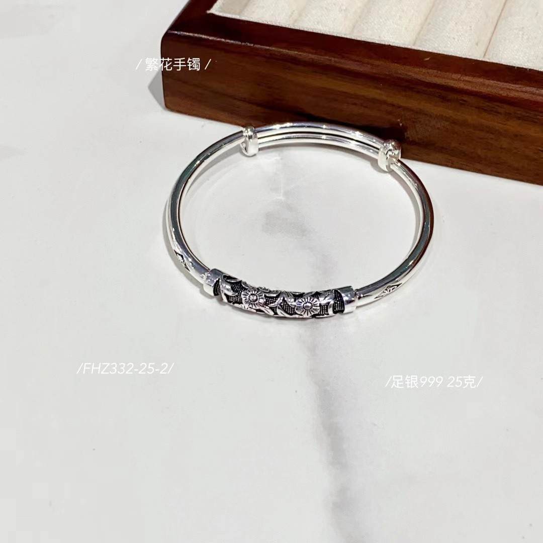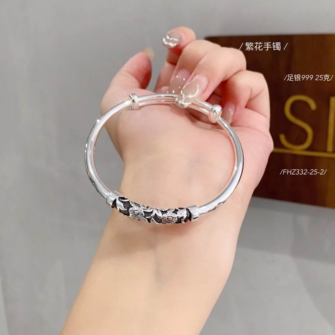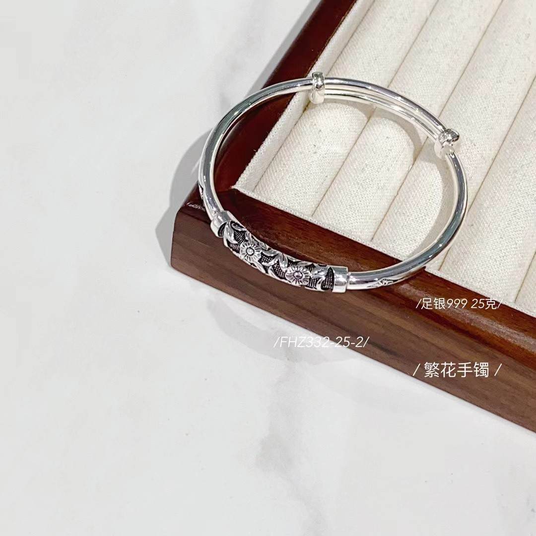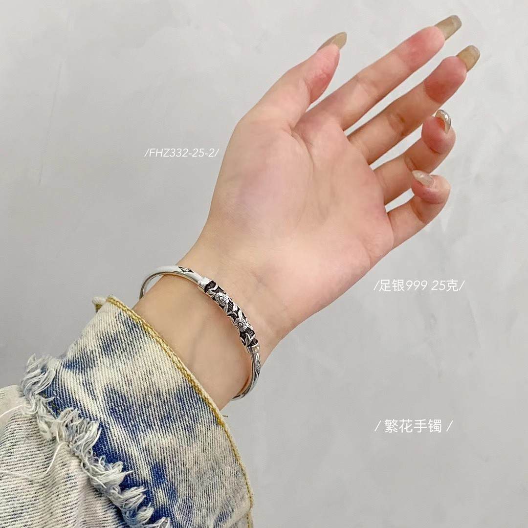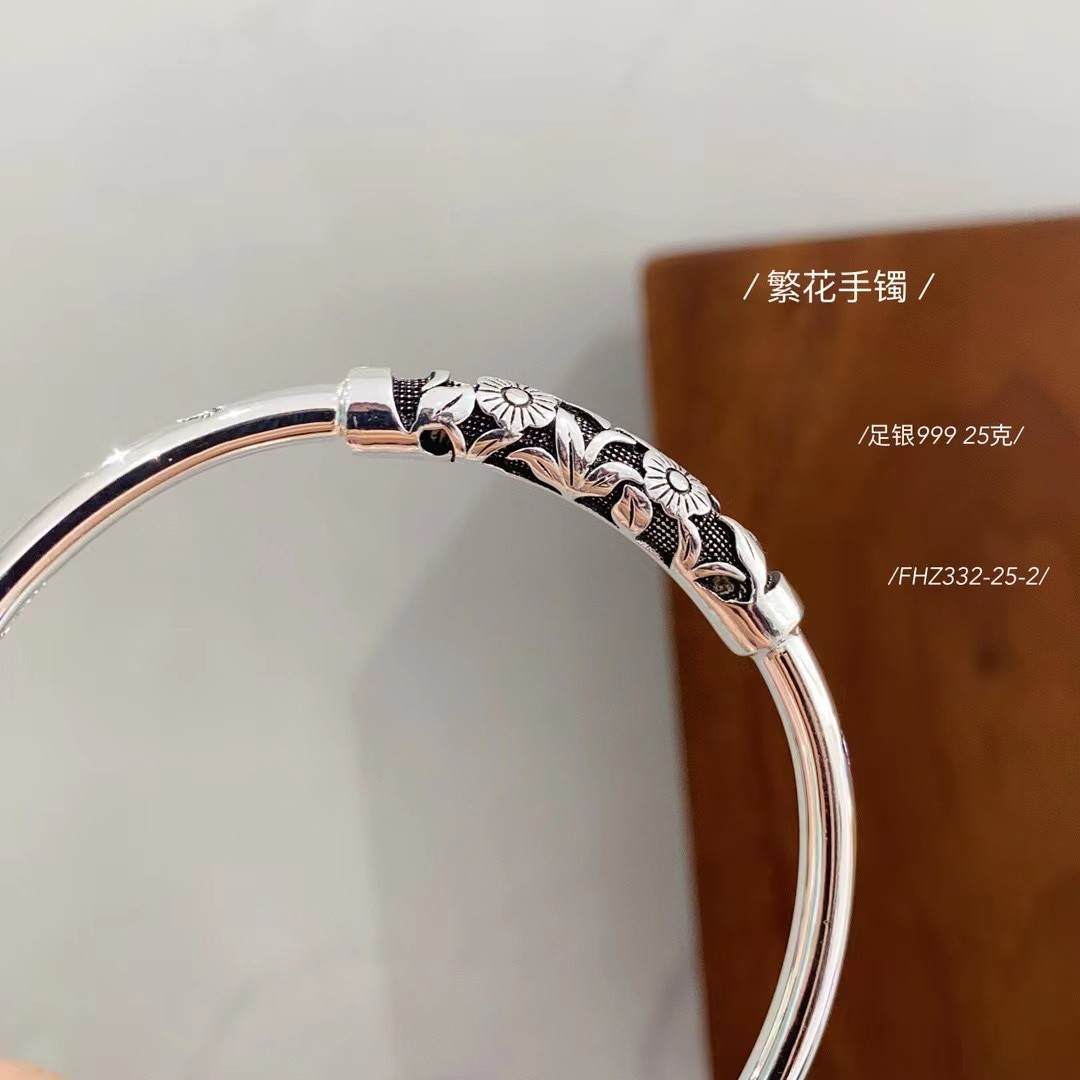 足银999满世繁花复古系列繁花手镯 克重约:25克(预售3-7天发货)