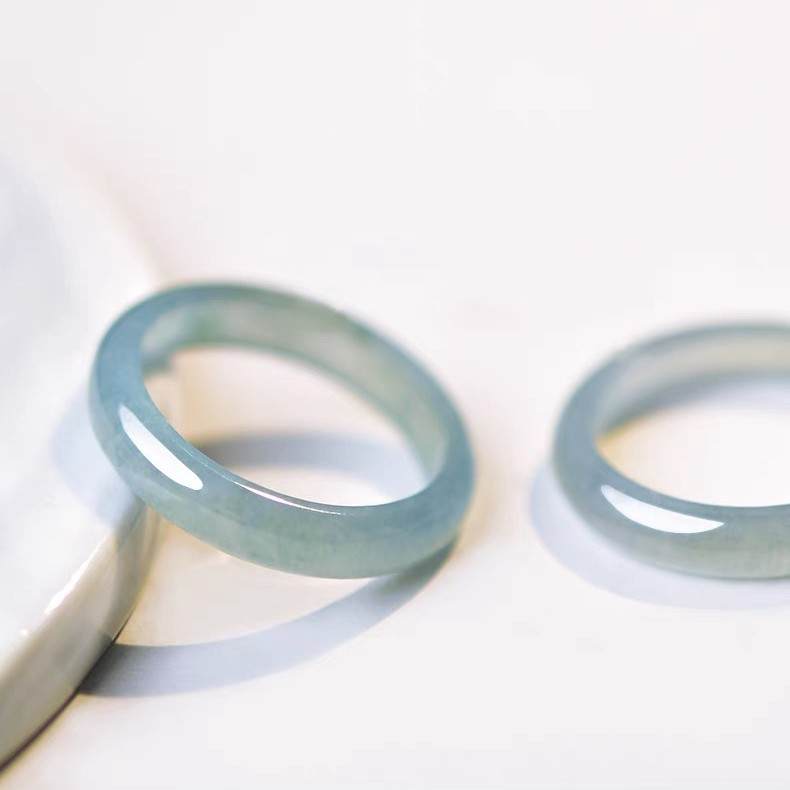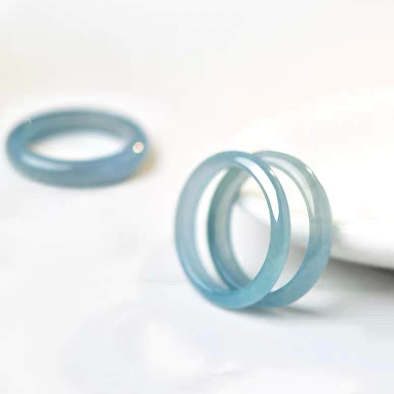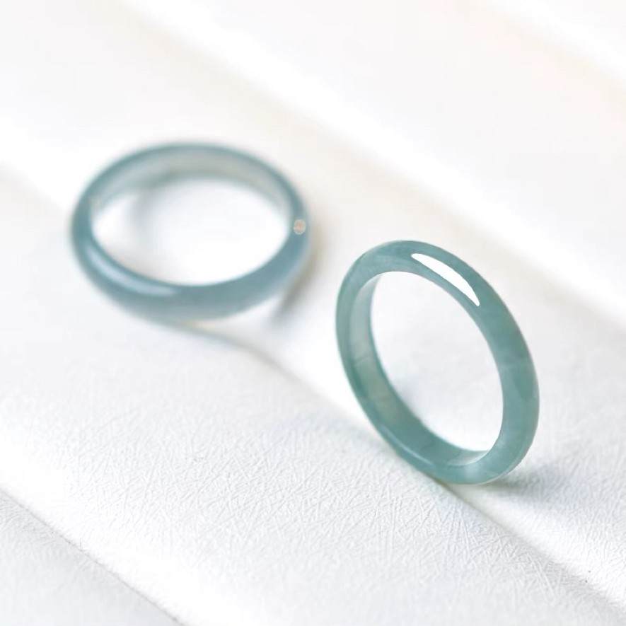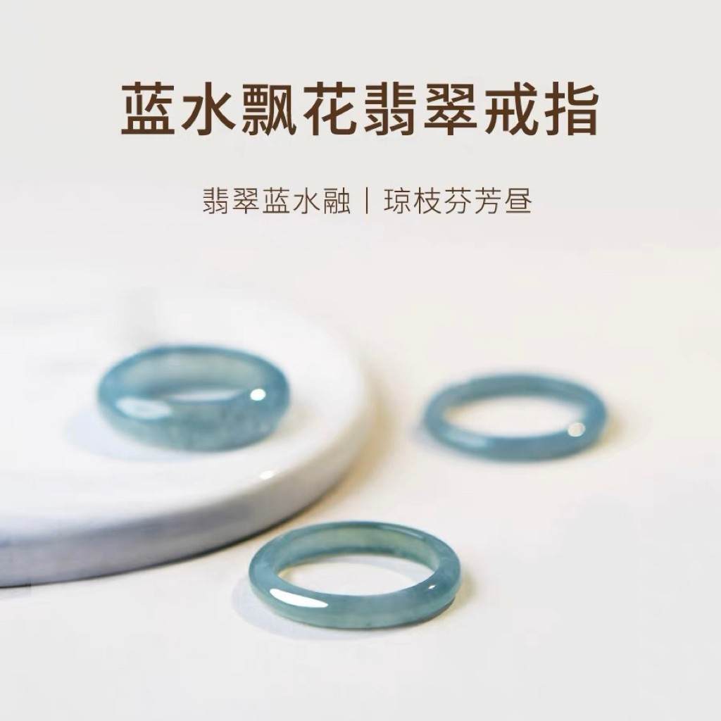 高冰种蓝水素圈翡翠玉戒指 14#/16#
