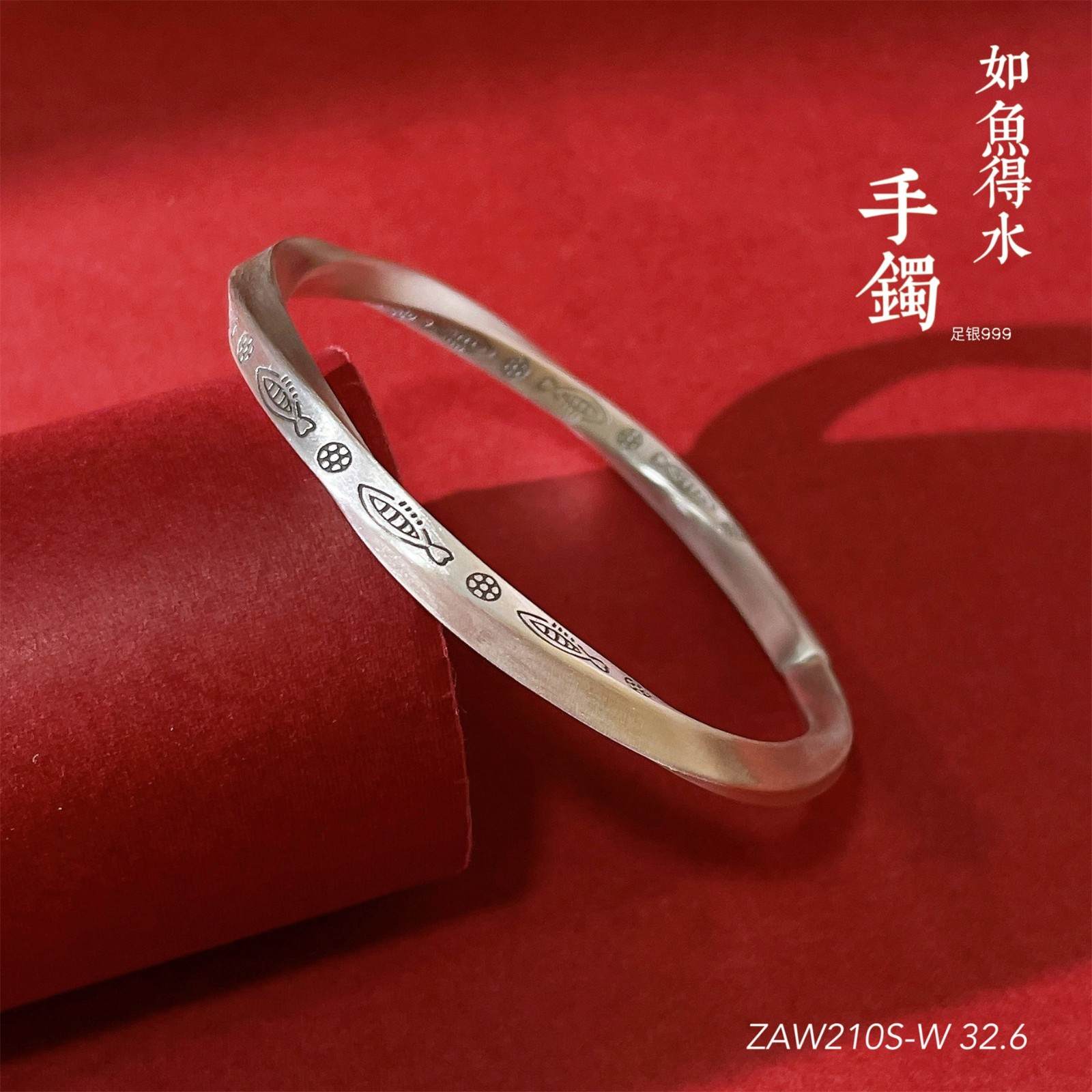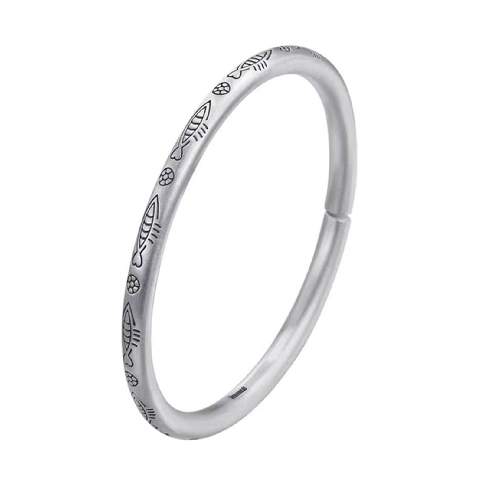 足银999复古做旧时尚简约如鱼得水纯银手镯 15.7-32.6克(预售3-7天发货)