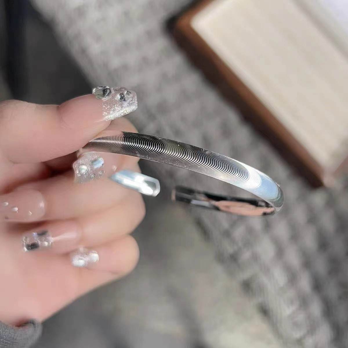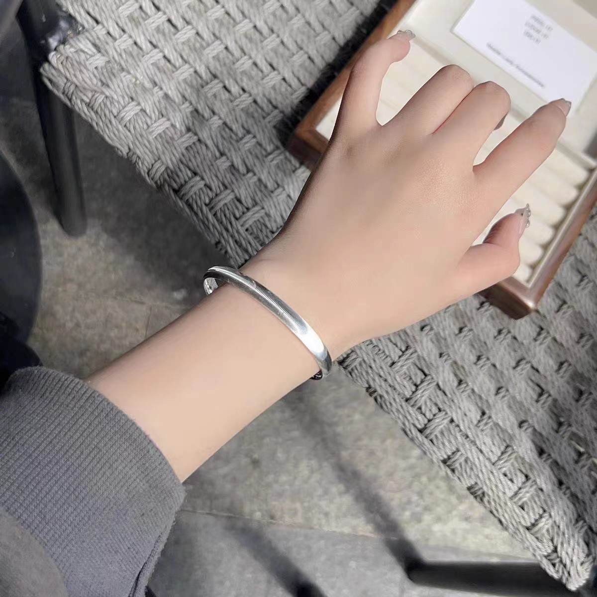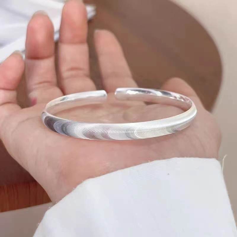 足银999爆闪猫眼2024新款实心时尚百搭拉丝手镯 克重约:20.8克(预售7天发货)