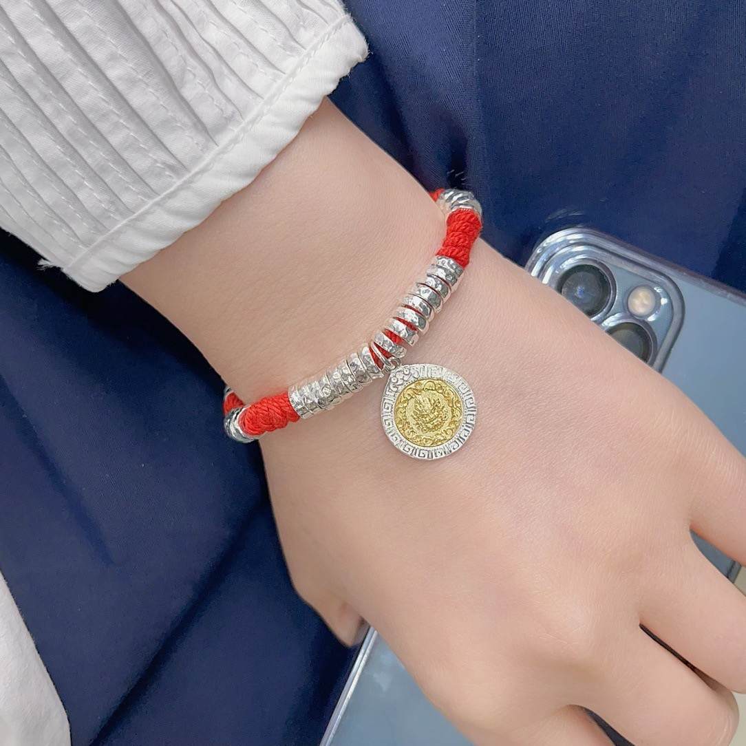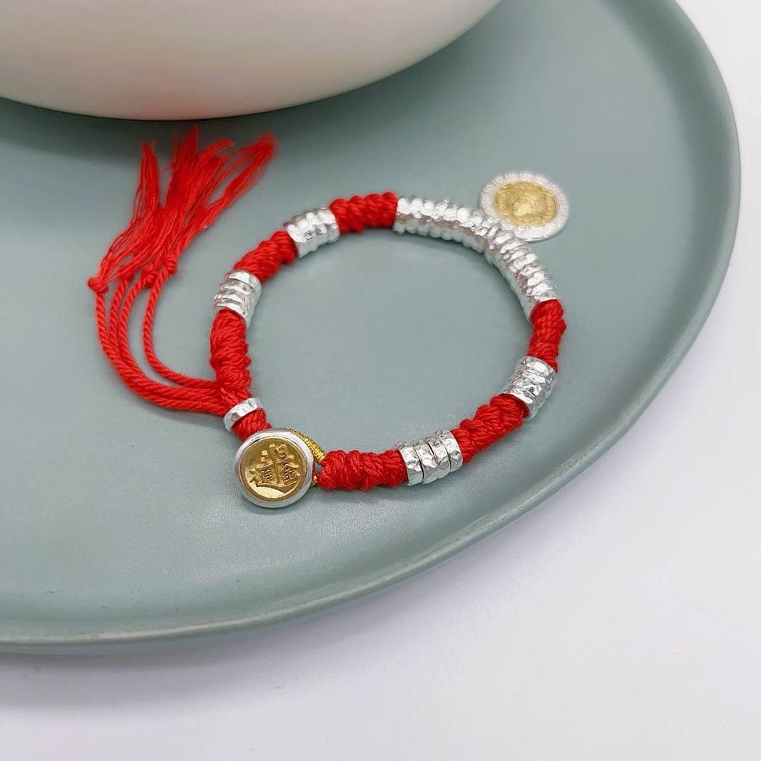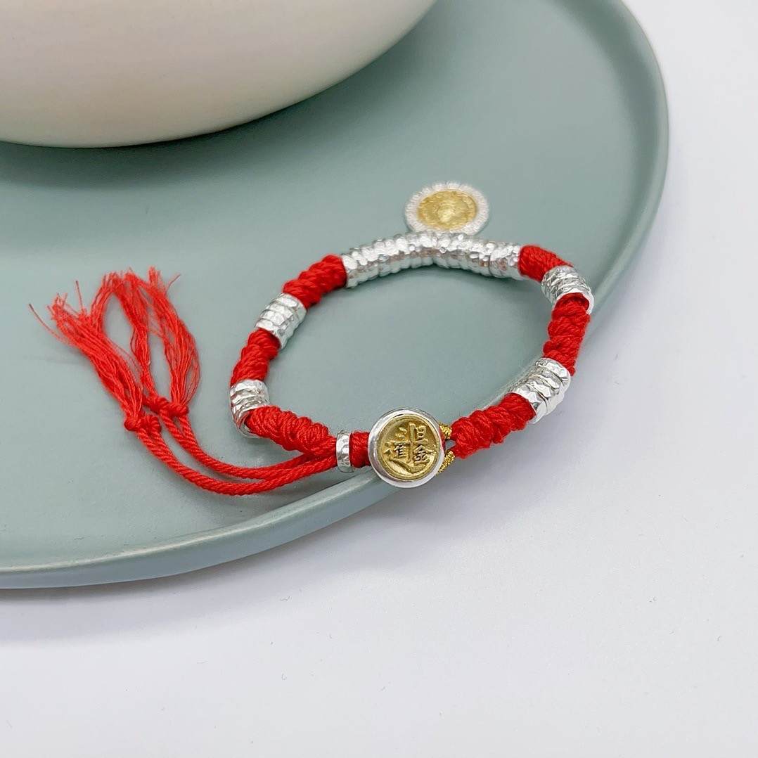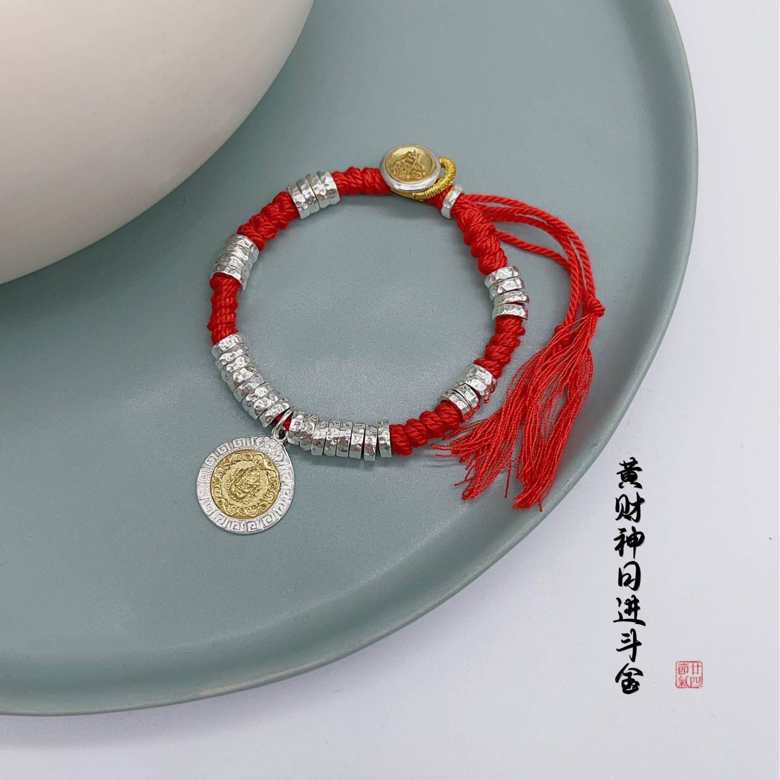 #足银999原创设计盘缠国潮编绳黄财神日进斗金银手链 克重约:21克(预售3-7天发货)