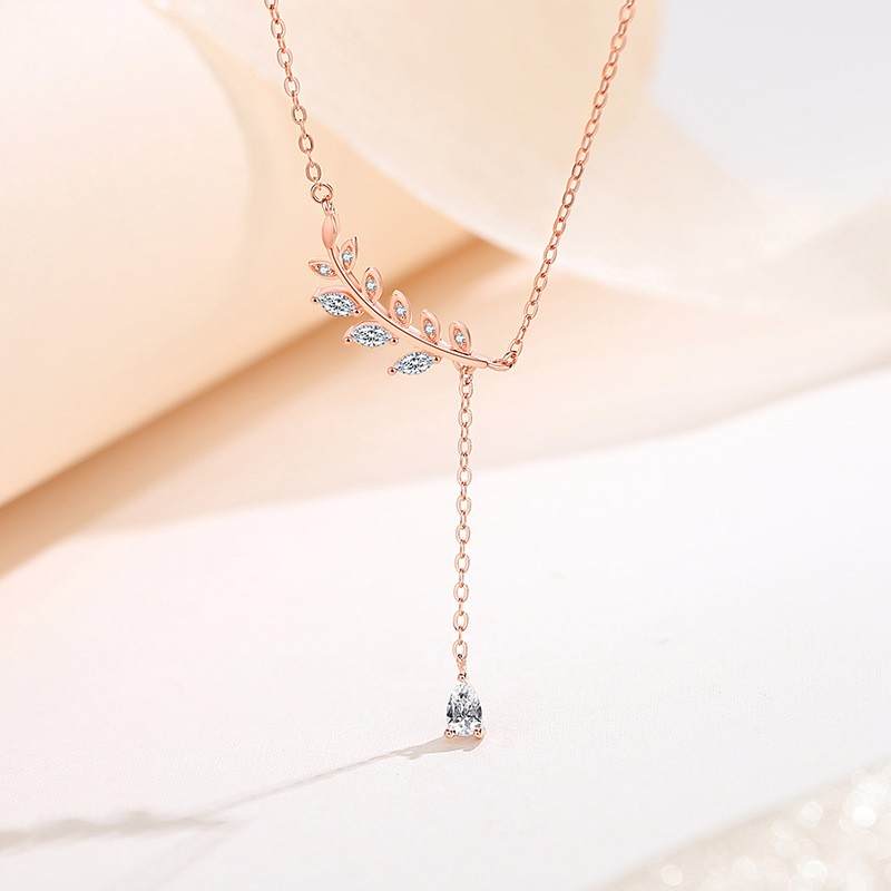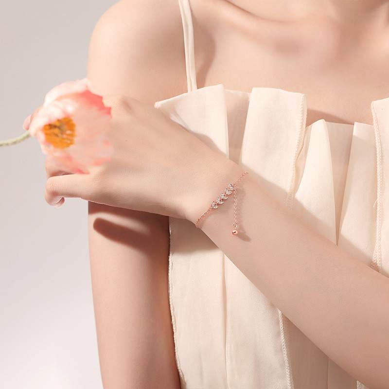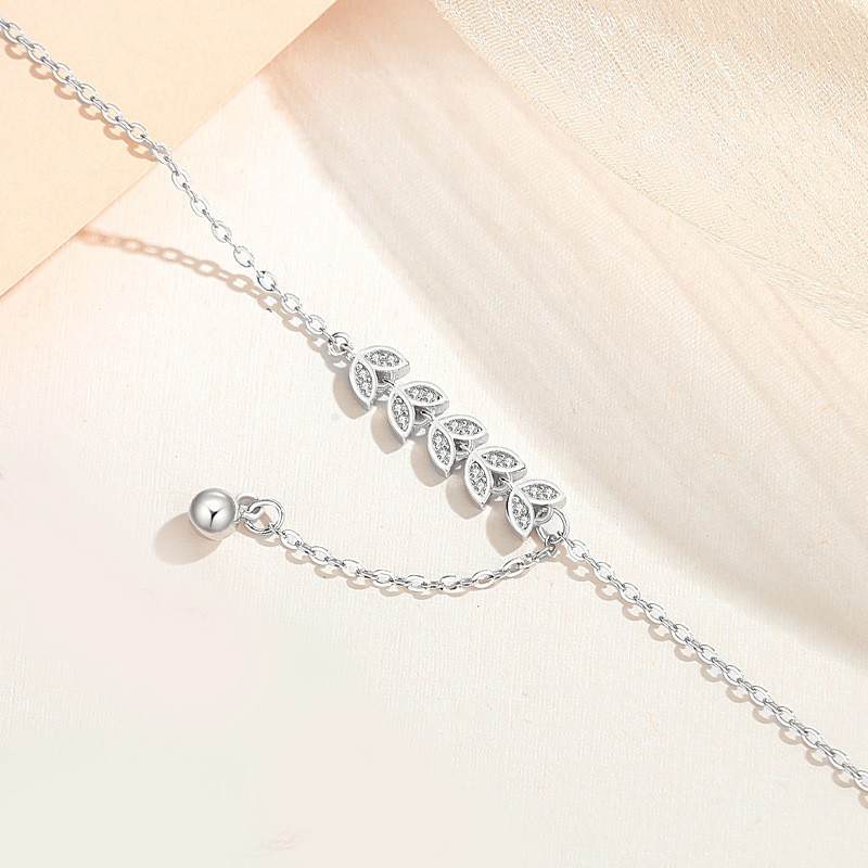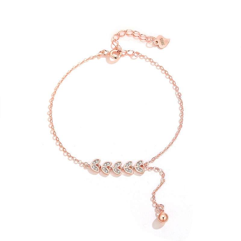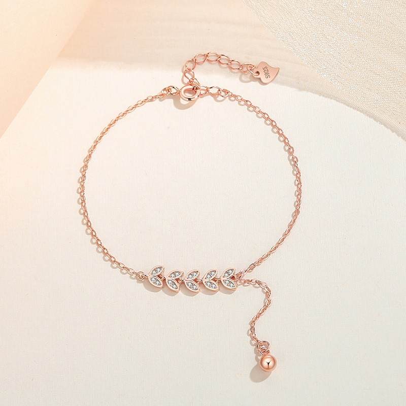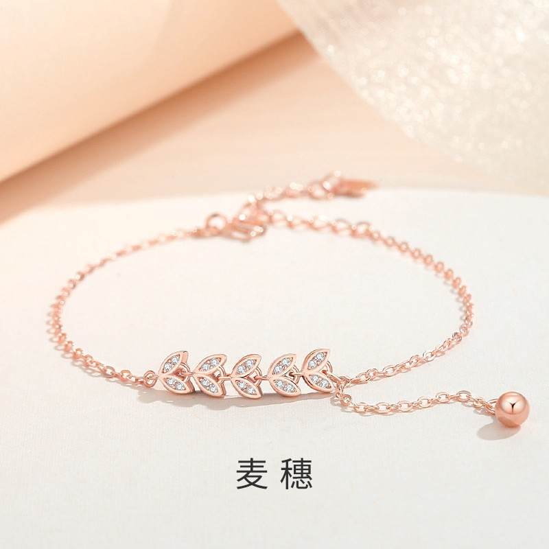 S925银森系叶子小清新百搭玫瑰金麦穗手链