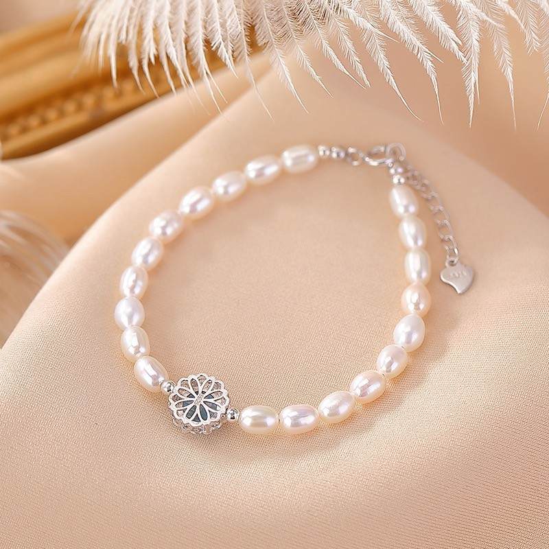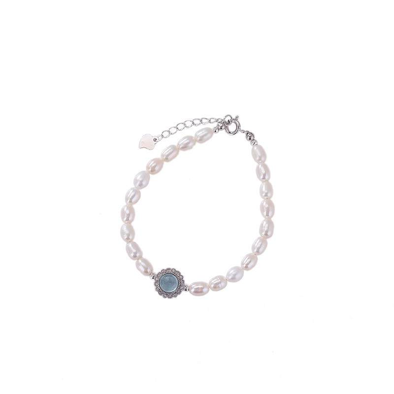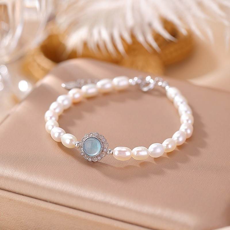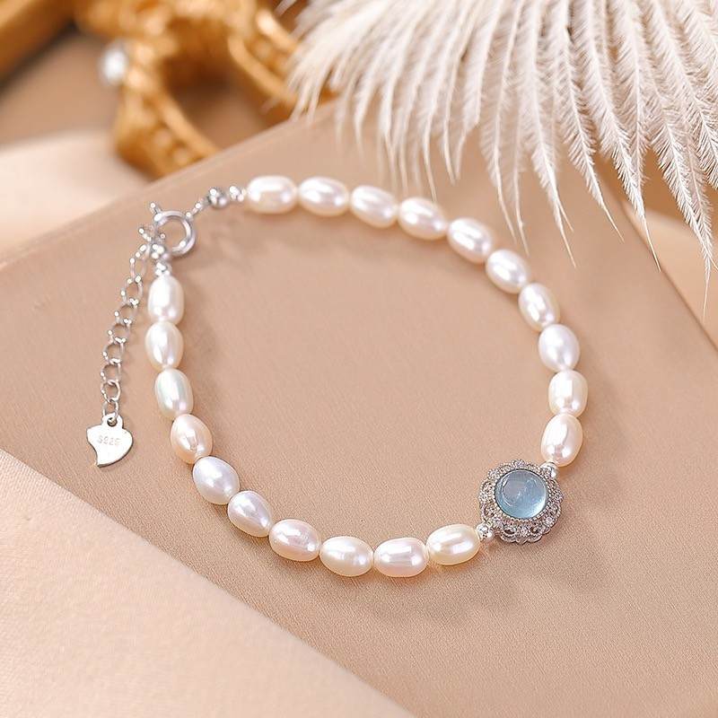 S925银天然淡水珍珠海蓝宝气质简约小清新手链