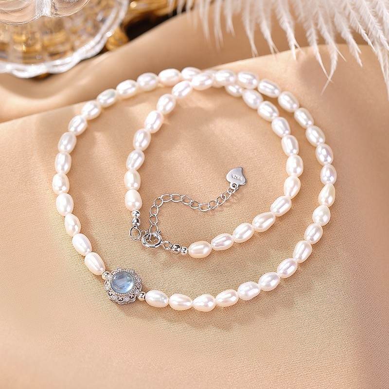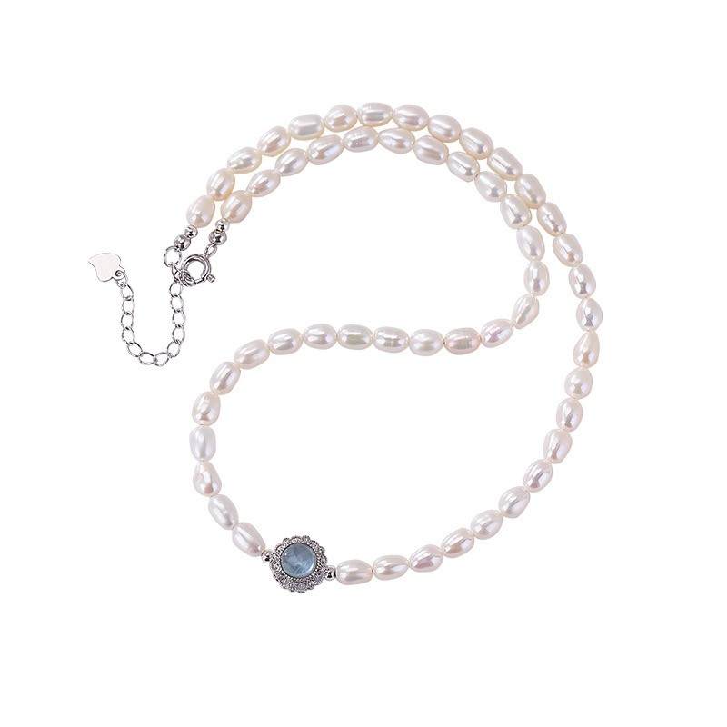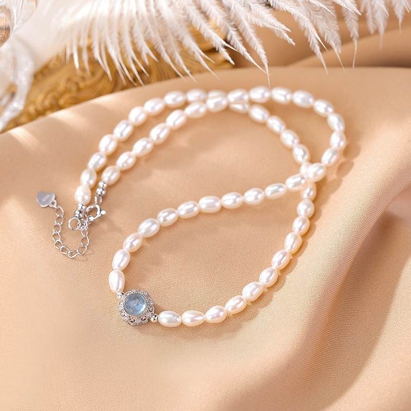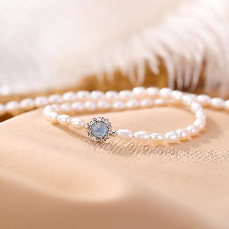 S925银海蓝宝淡水珍珠手链项链两用叠戴宫廷风设计感手链