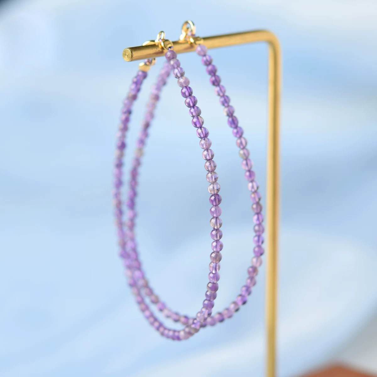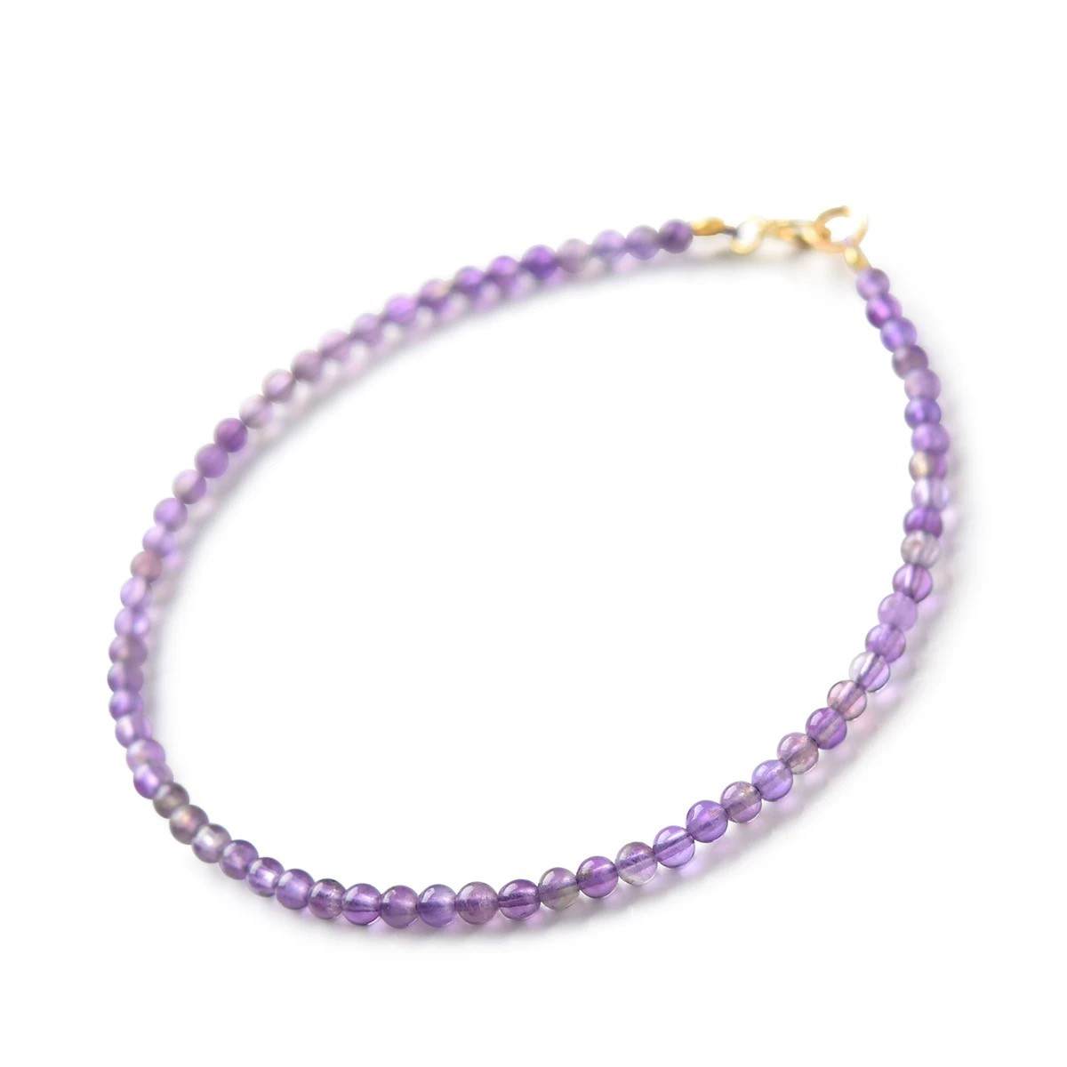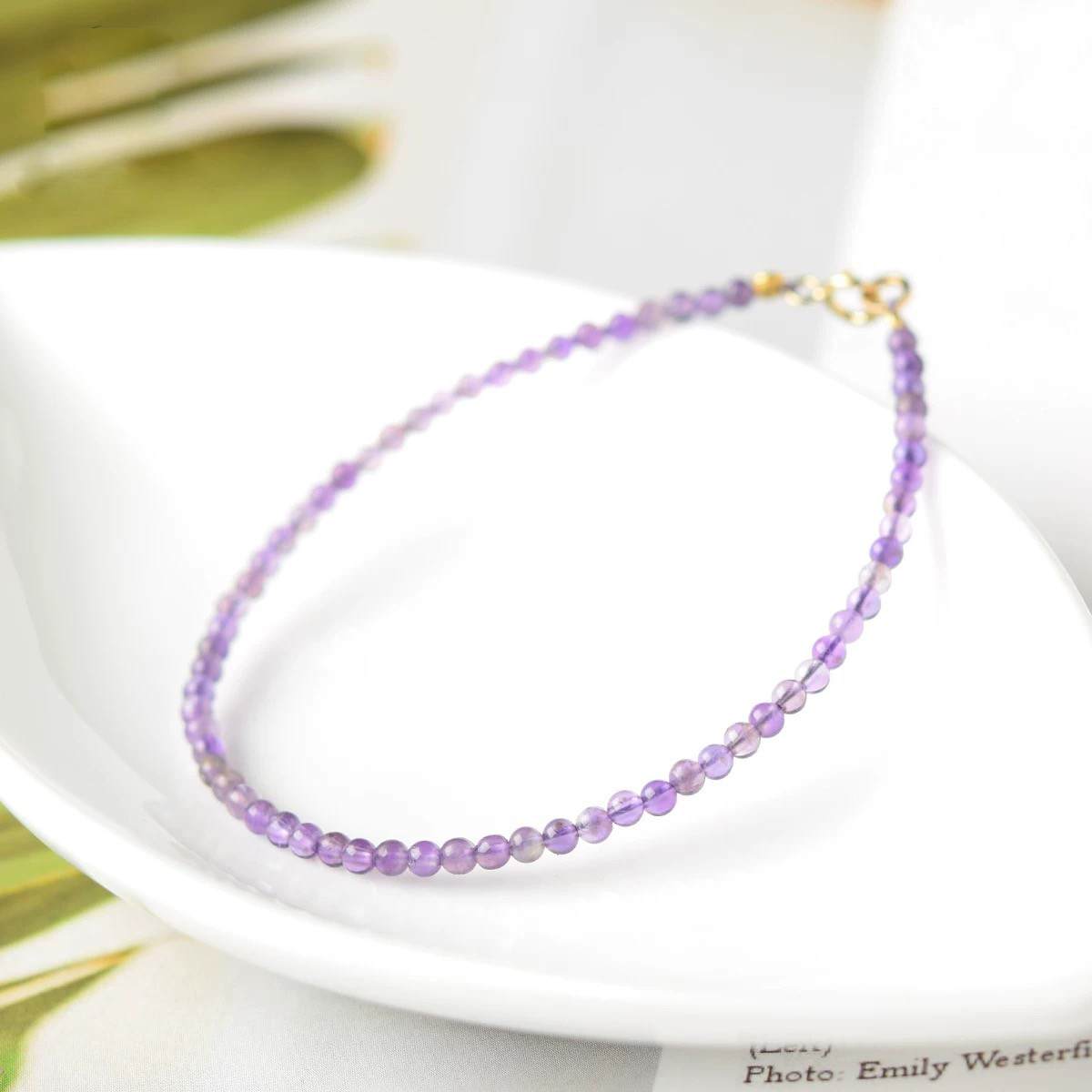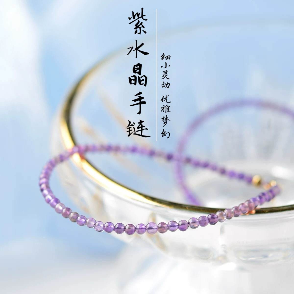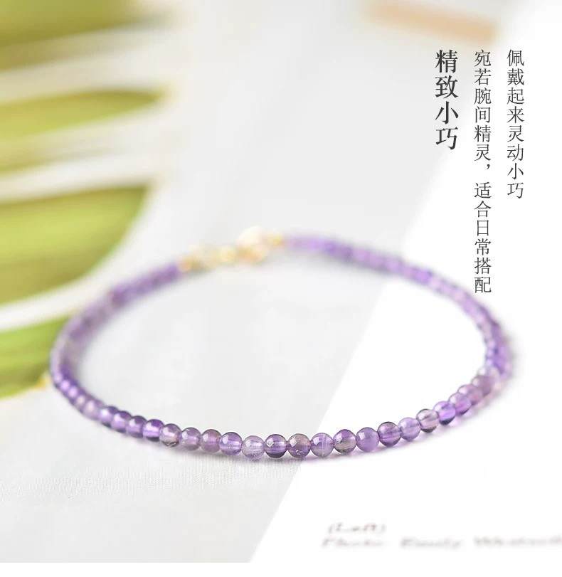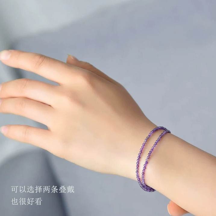 #S925银紫水晶手链女东海水晶玛瑙玉髓翡翠宝玉石散珠子细小米珠紫晶手串