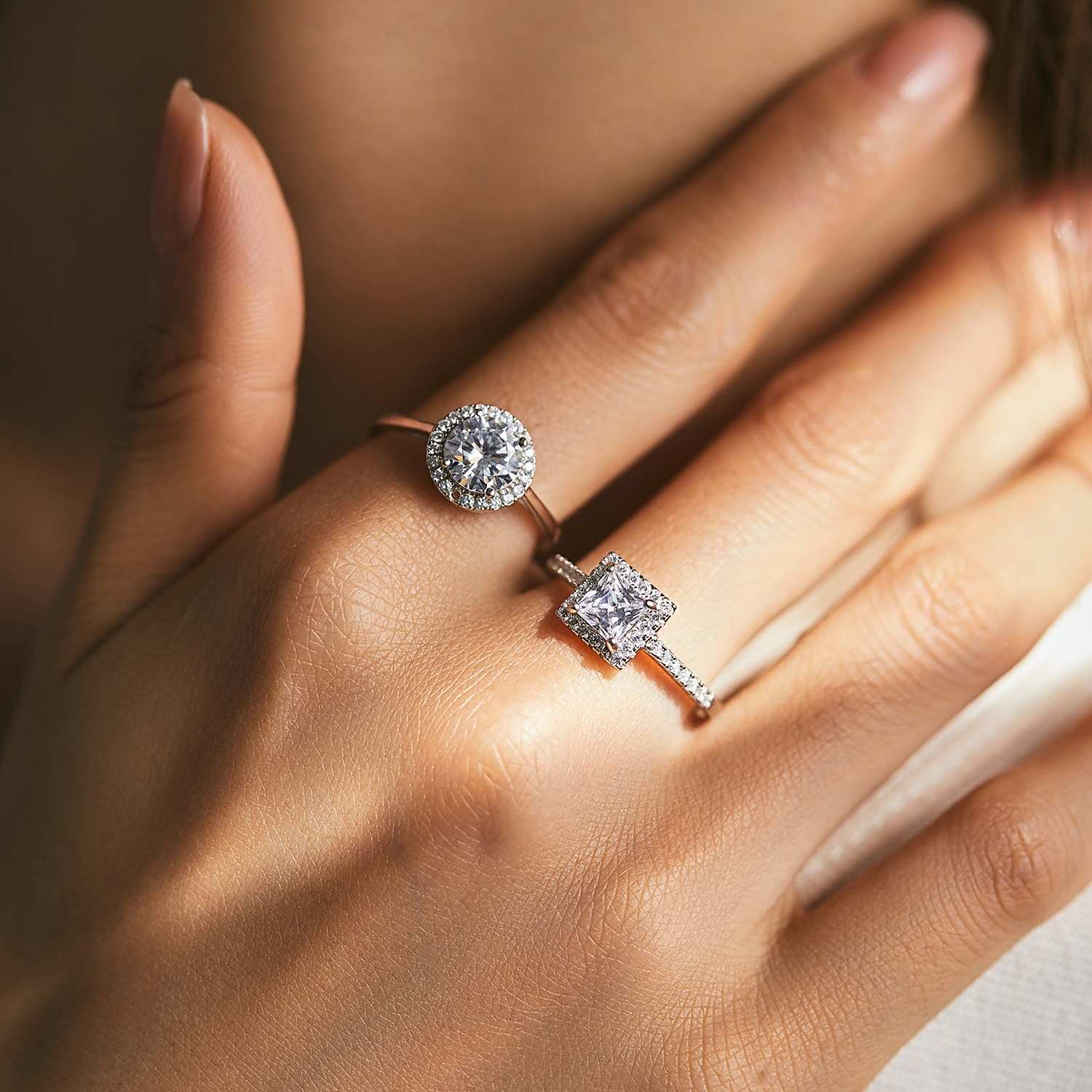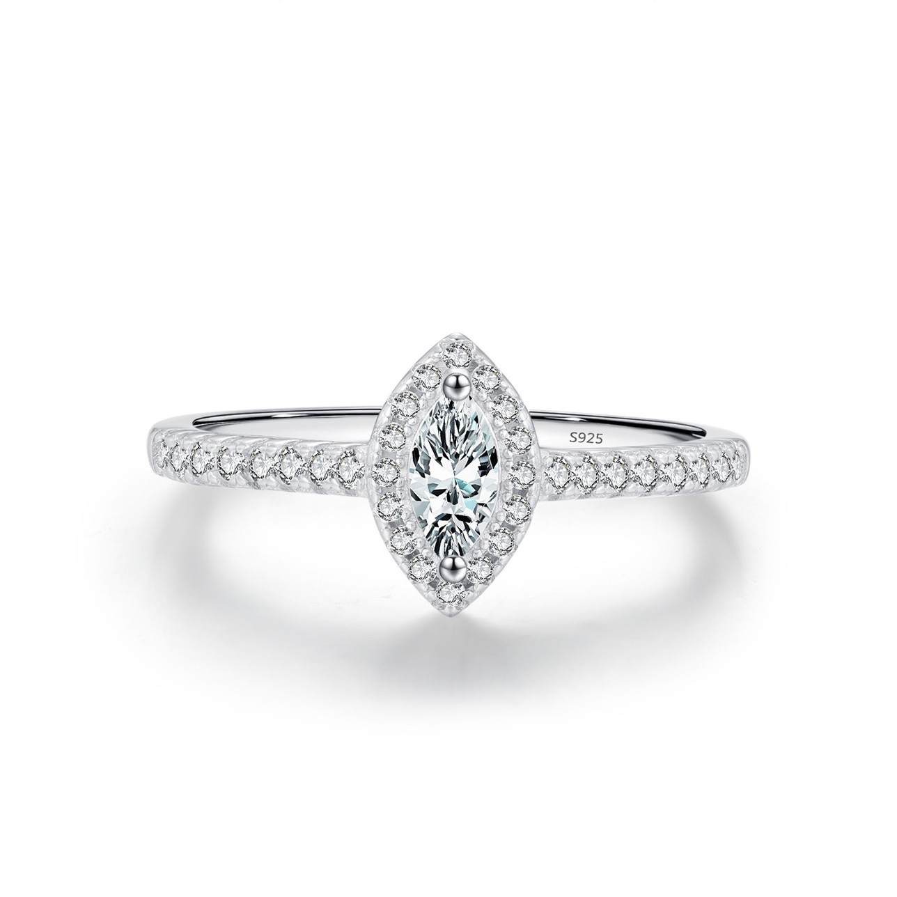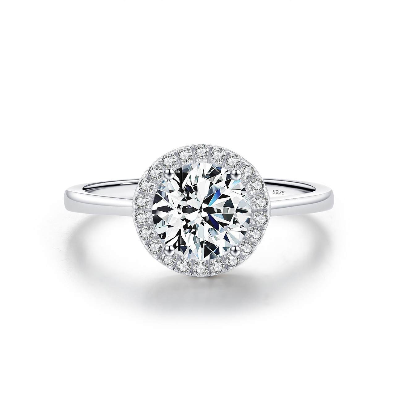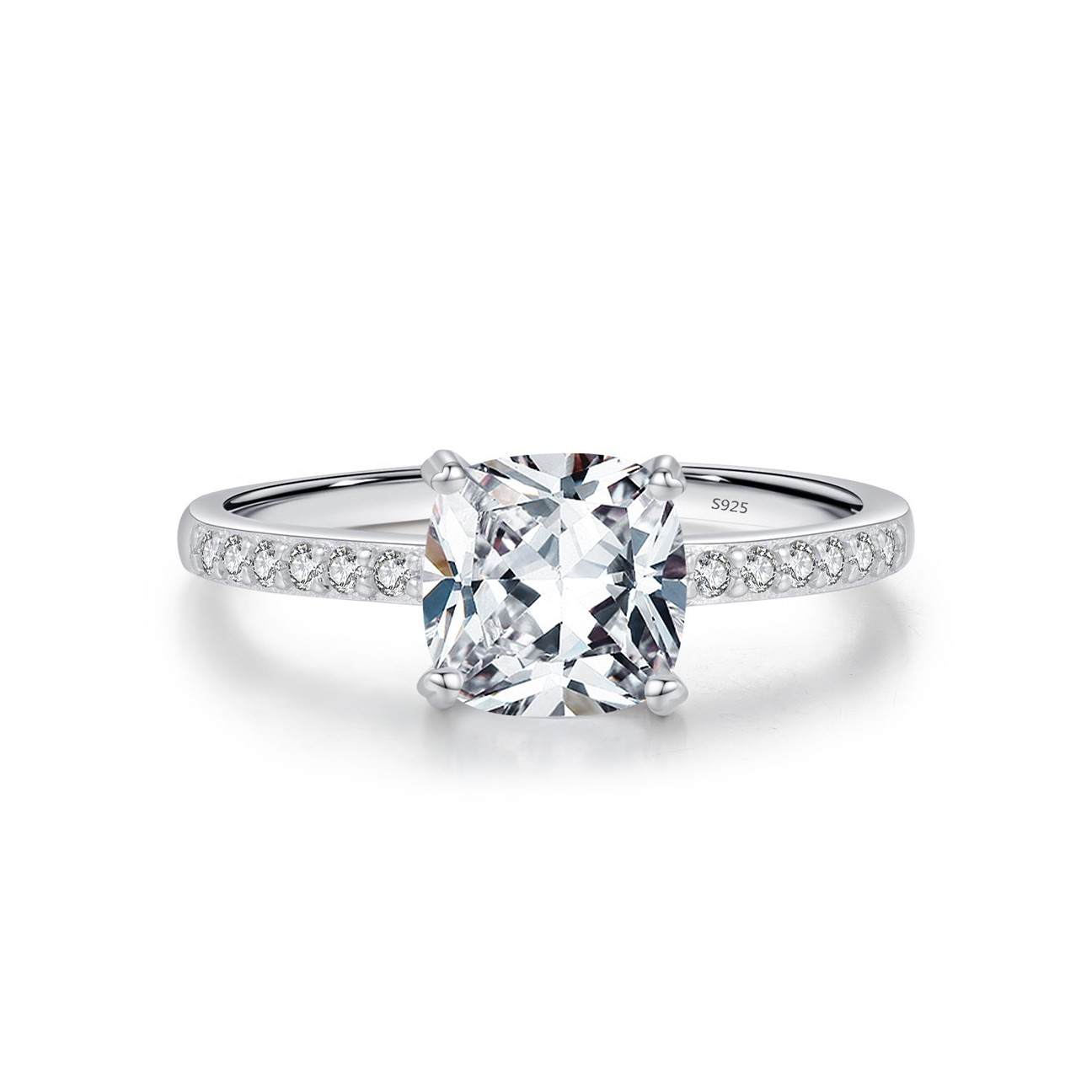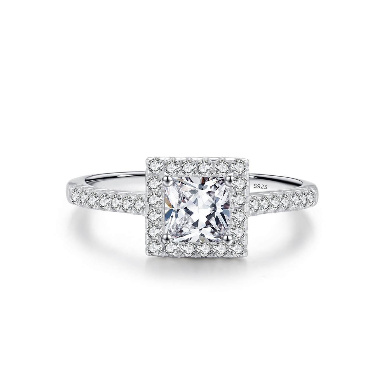S925银几何锆石满钻婚戒系列轻奢闪耀圆形方糖钻戒