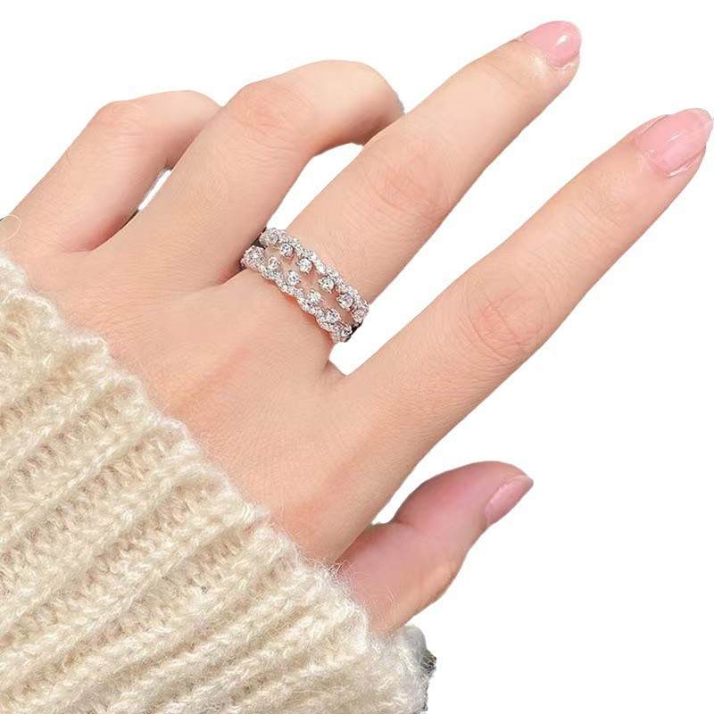 满钻排戒蕾丝戒指女简约个性细薄叠戴戒指时尚潮流款