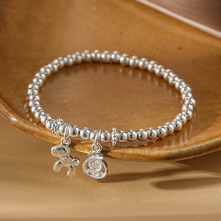 足银马上有钱福袋招财纳福串珠转运圆珠手链 克重:12.88g