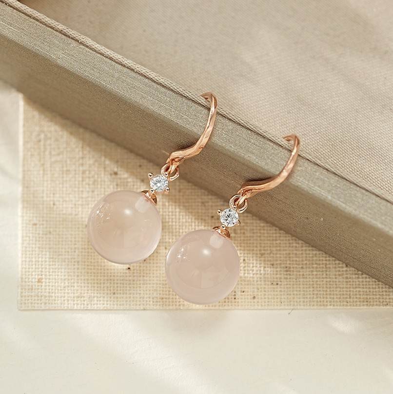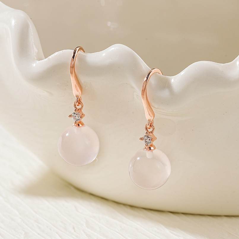 S925银天然粉水晶经典百搭单钻耳钩耳坠
