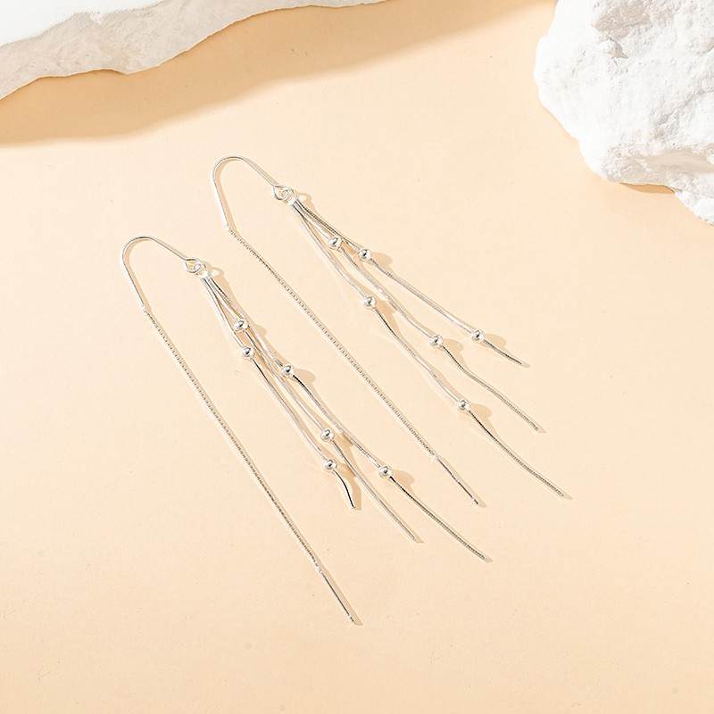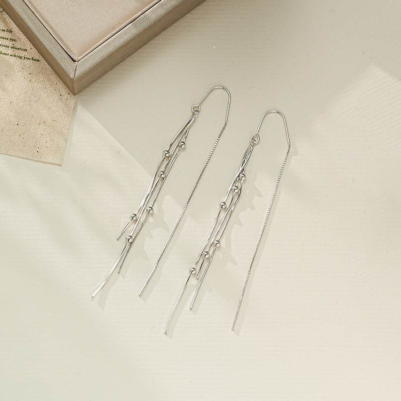 S925银气质流苏通勤显瘦光珠长款耳线