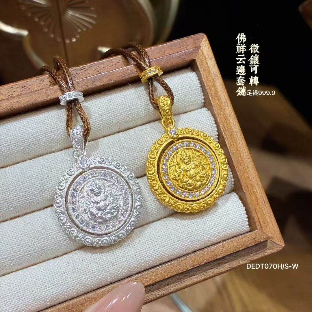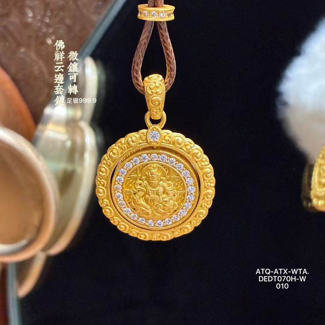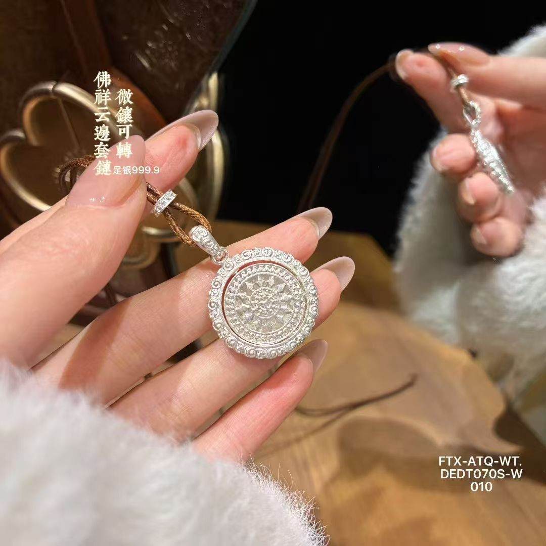足银999.9微镶可转动佛祥云边套链10g(预售3-7天发货)