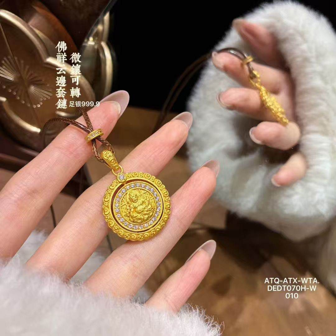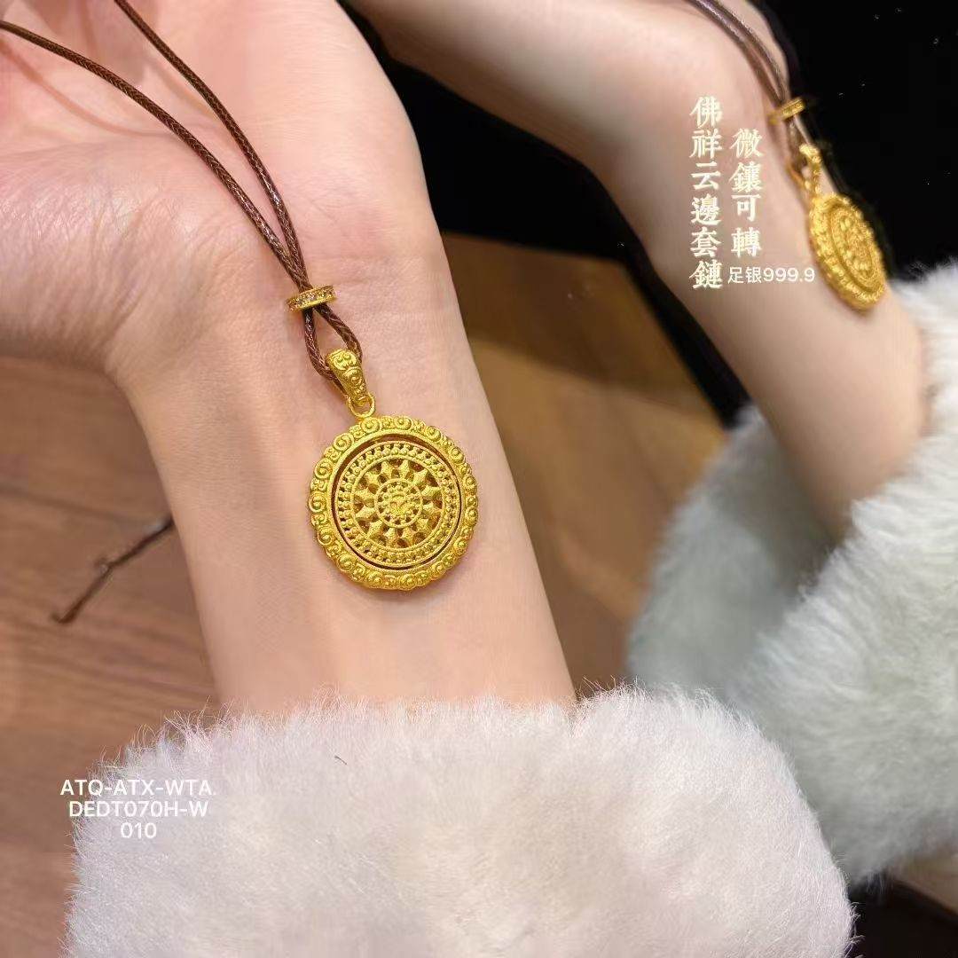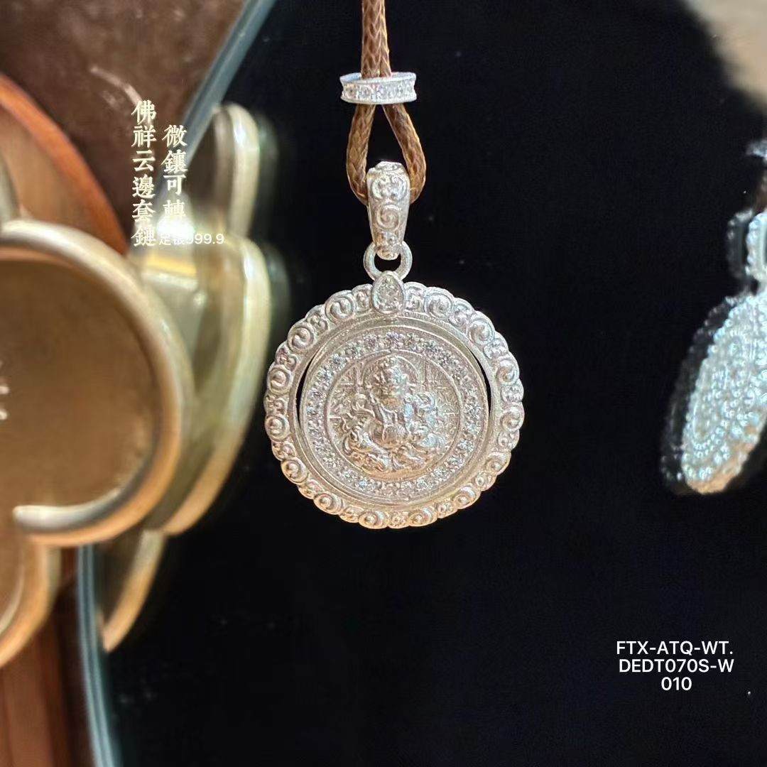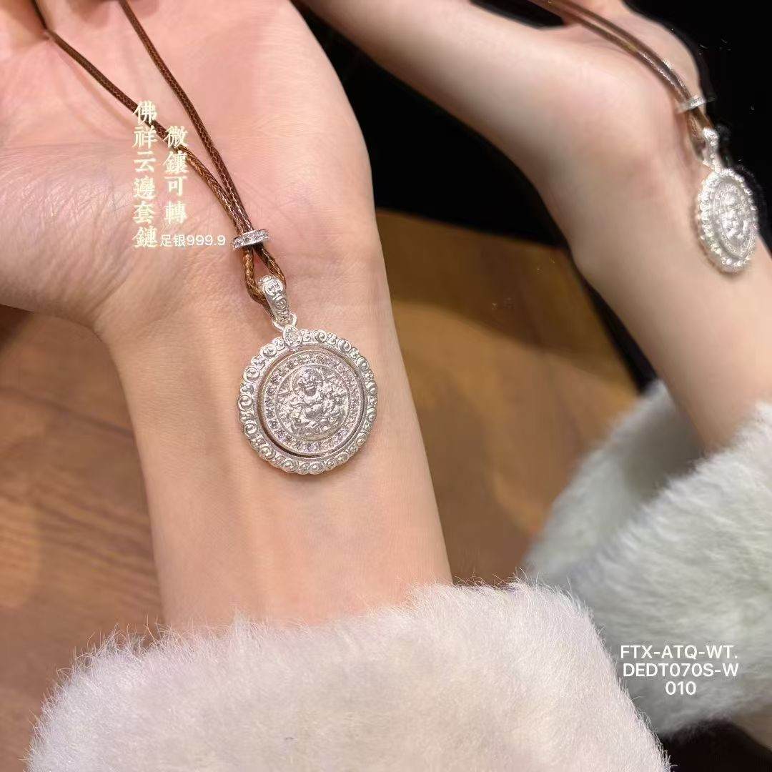 足银999.9微镶可转动佛祥云边套链10g(预售3-7天发货)