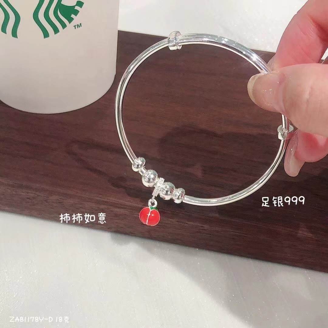 足银999串珠吊红柿事事如意亲子手镯 大人款18克/宝宝款约24.5克(预售7天发货)