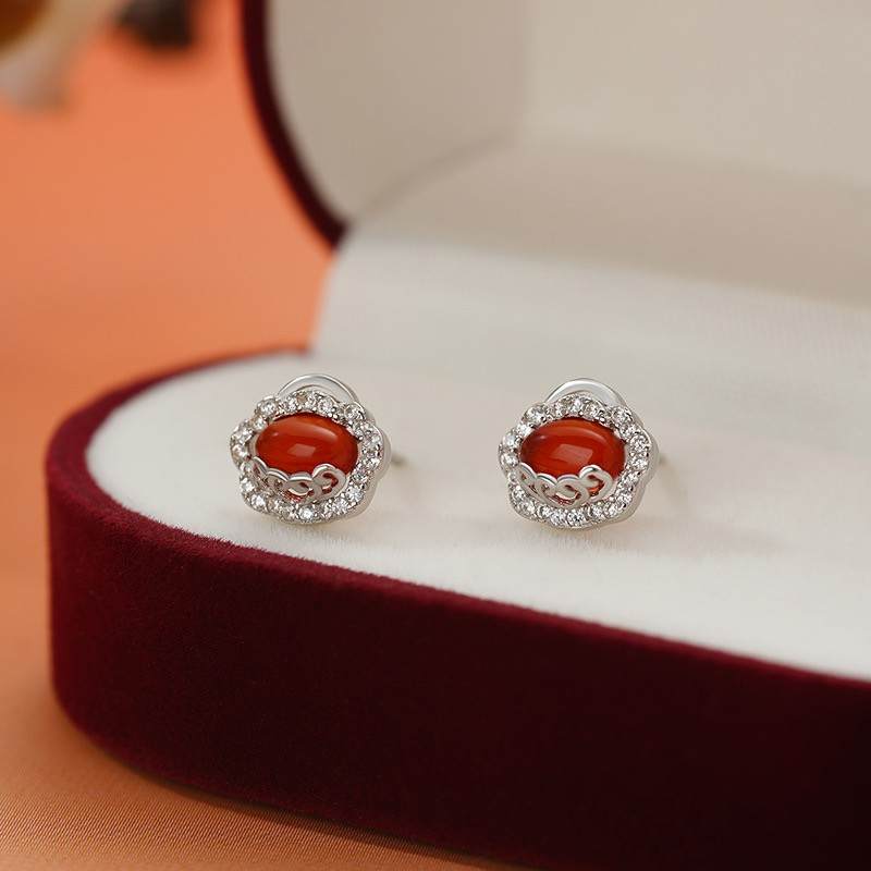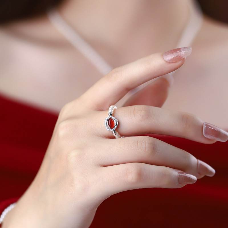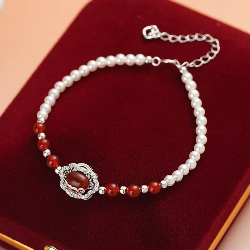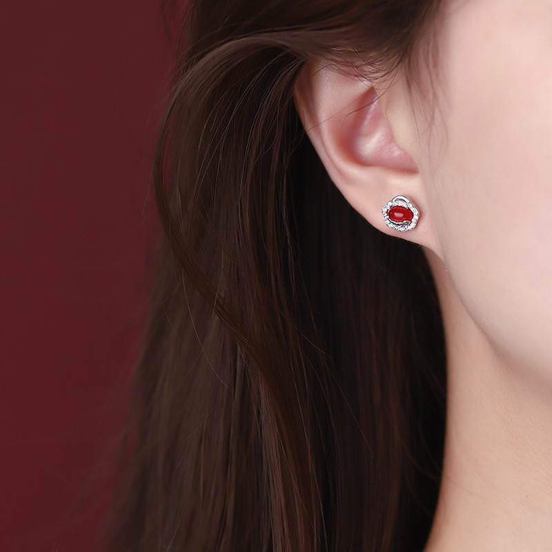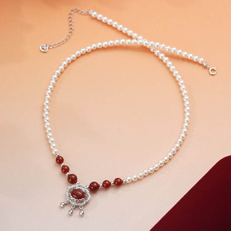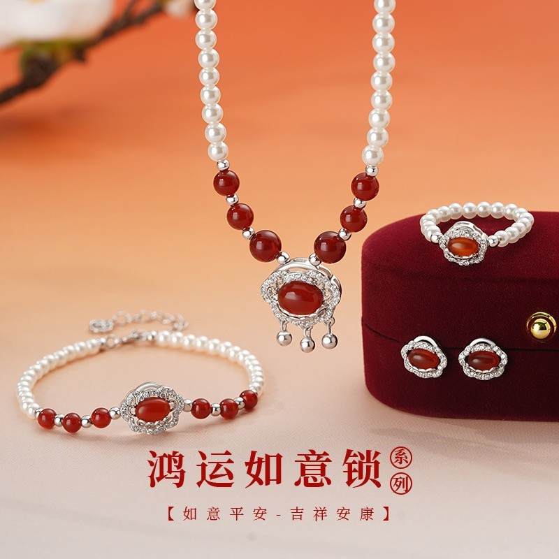 【限时秒杀99积分+59】S925银红玛瑙如意锁流苏项链本命年鸿运首饰套装