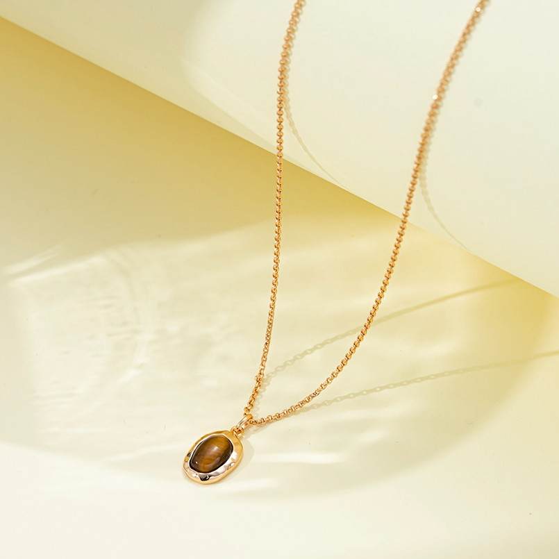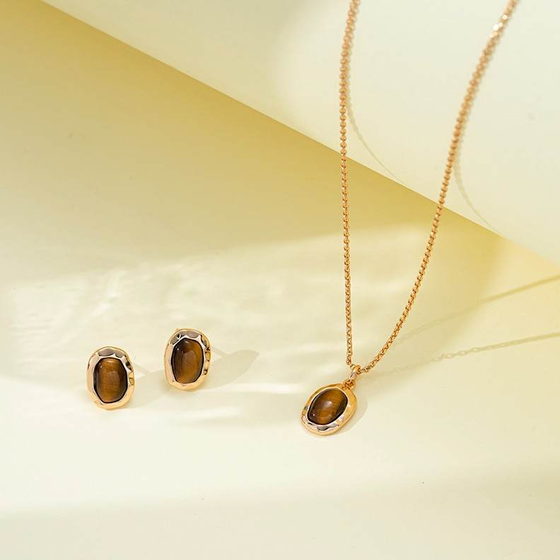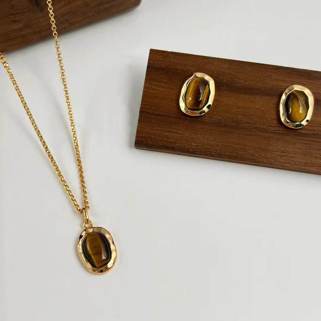 S925银美拉德风复古天然虎眼石气质叠戴套链/耳钉