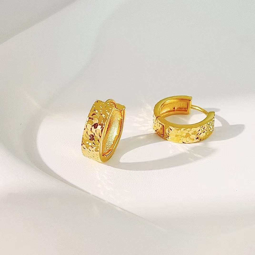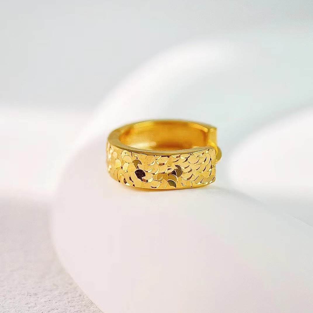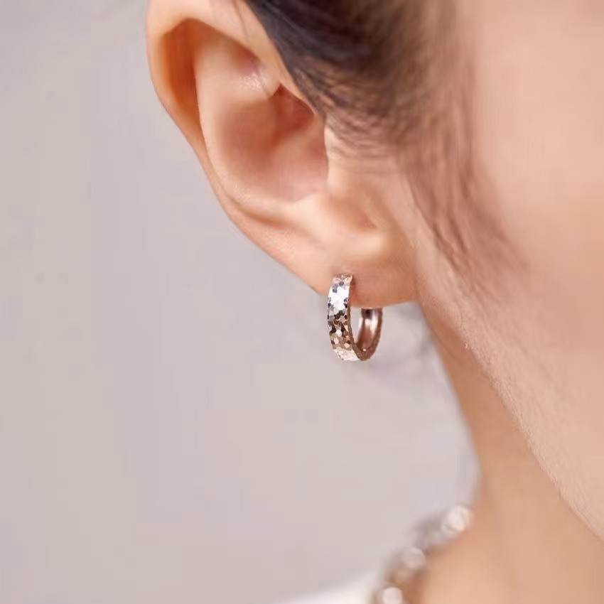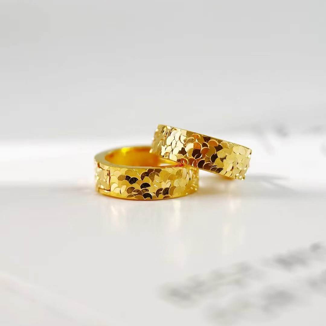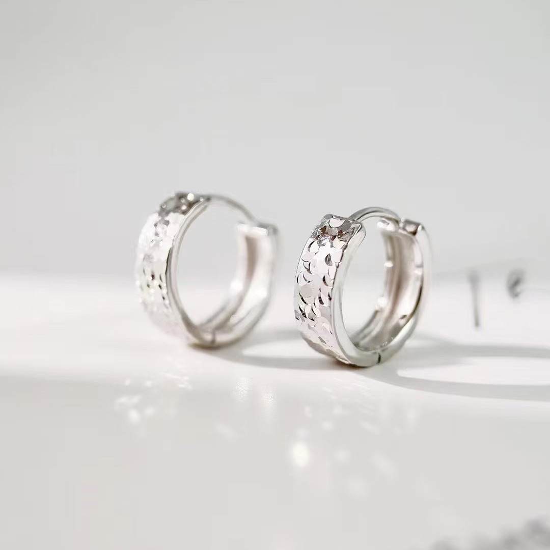 S925银碎冰冰鱼鳞刻花精致通勤光泽感素圈耳扣