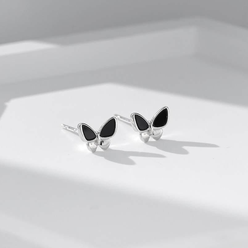 S925银黑色蝴蝶精致小清新小巧精致耳钉
