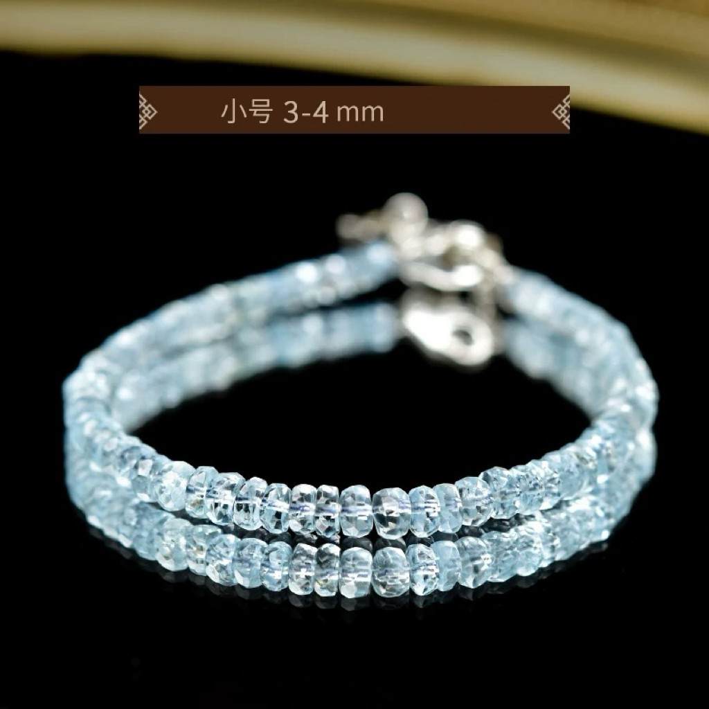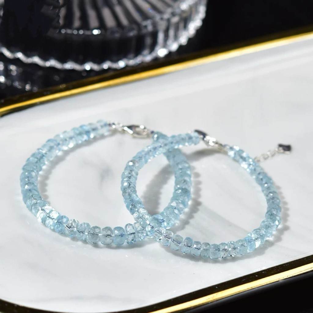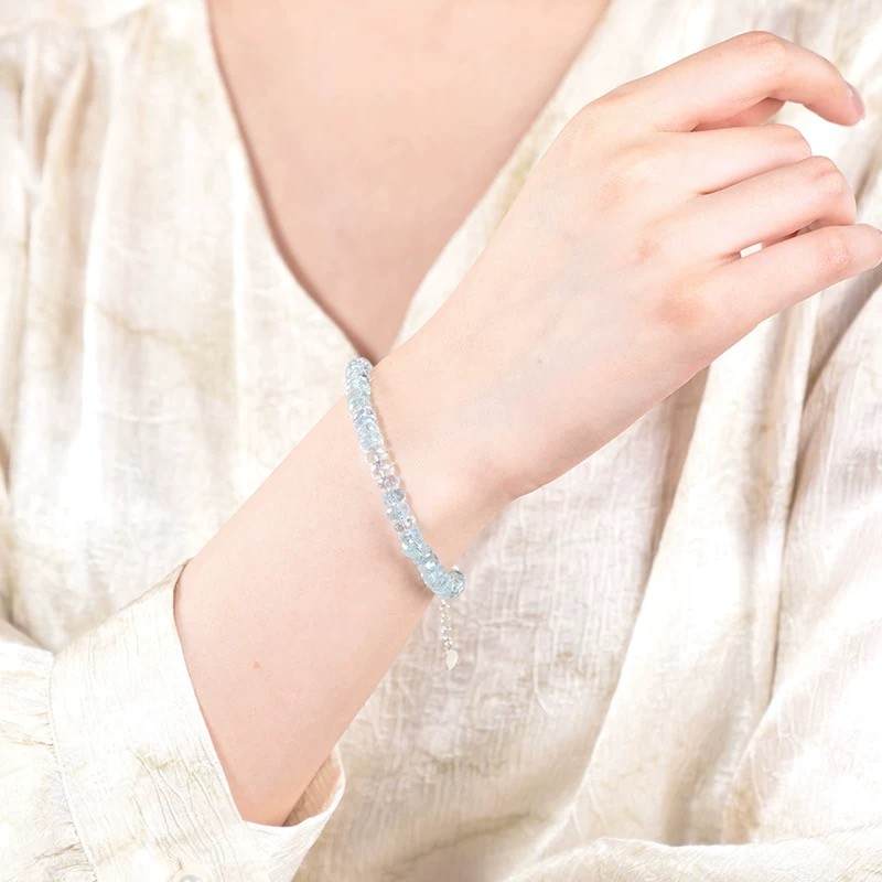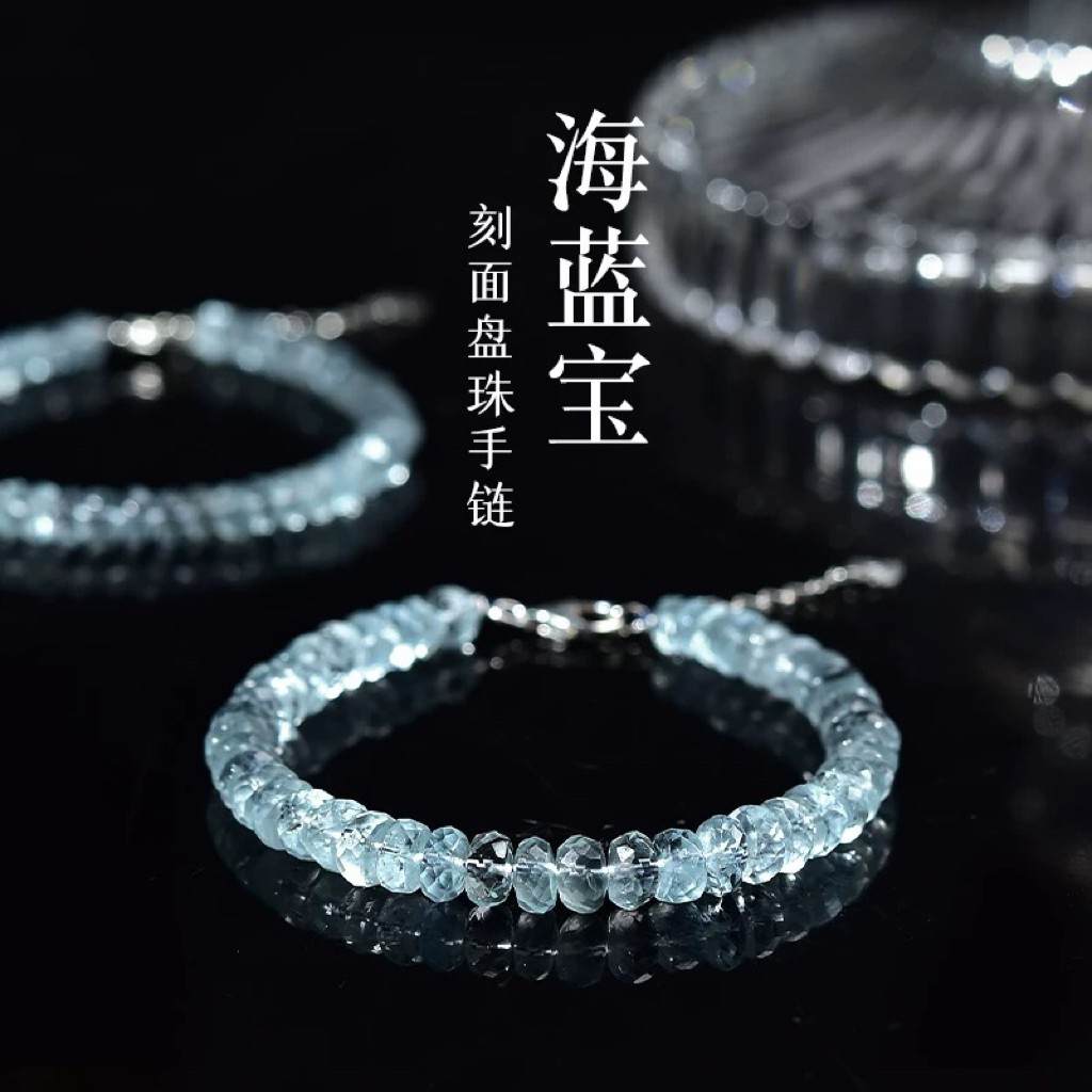 S925银天然海蓝宝刻面算盘珠手链