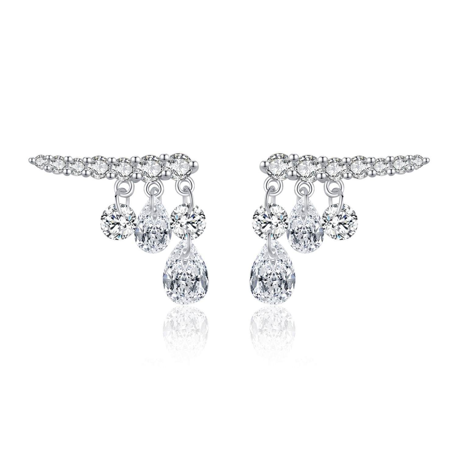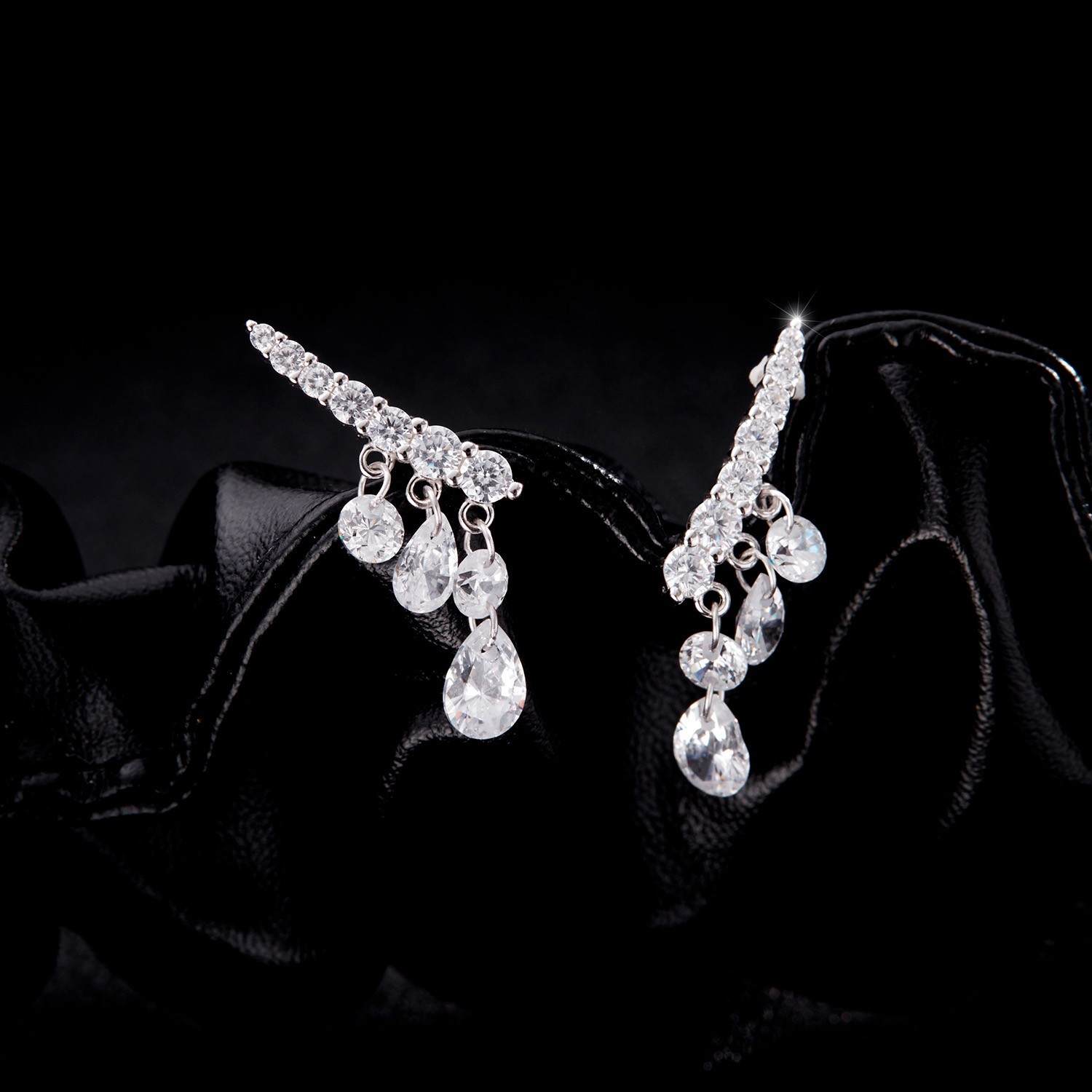 S925银老钱风日韩精致摇曳闪亮水滴排钻耳环