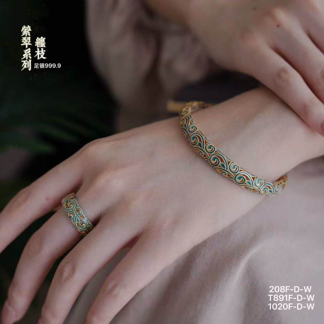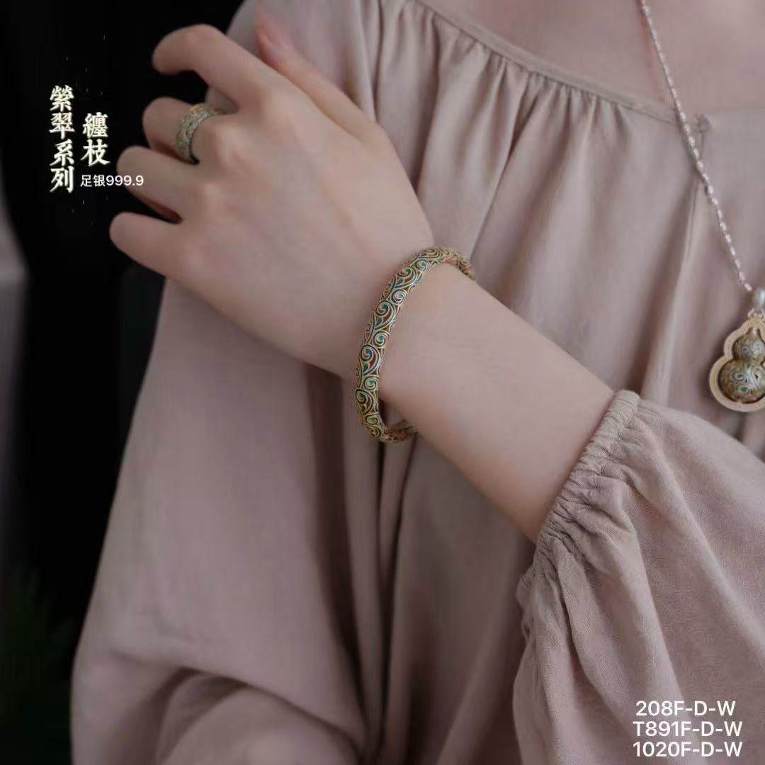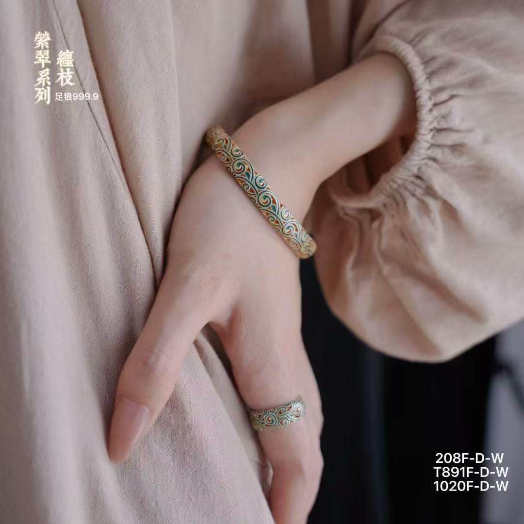 足银999.9缠枝萦翠系列国风描金镂空开口手镯30g戒指5g吊坠13g(预售3-7天发货)