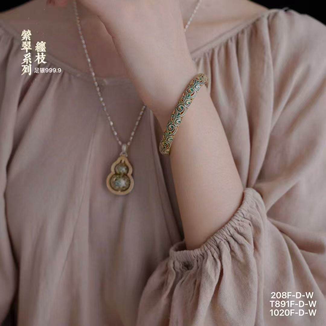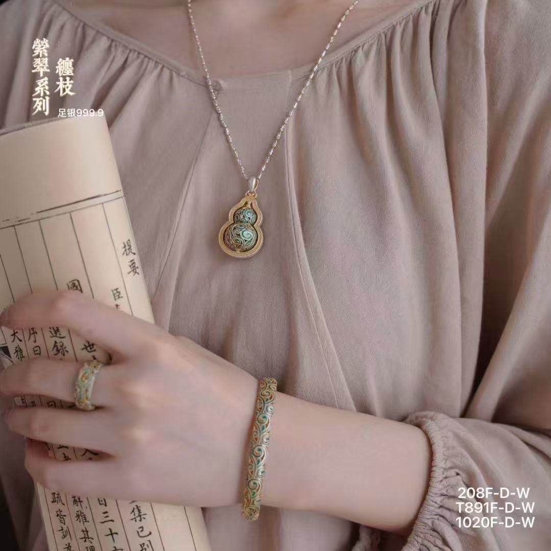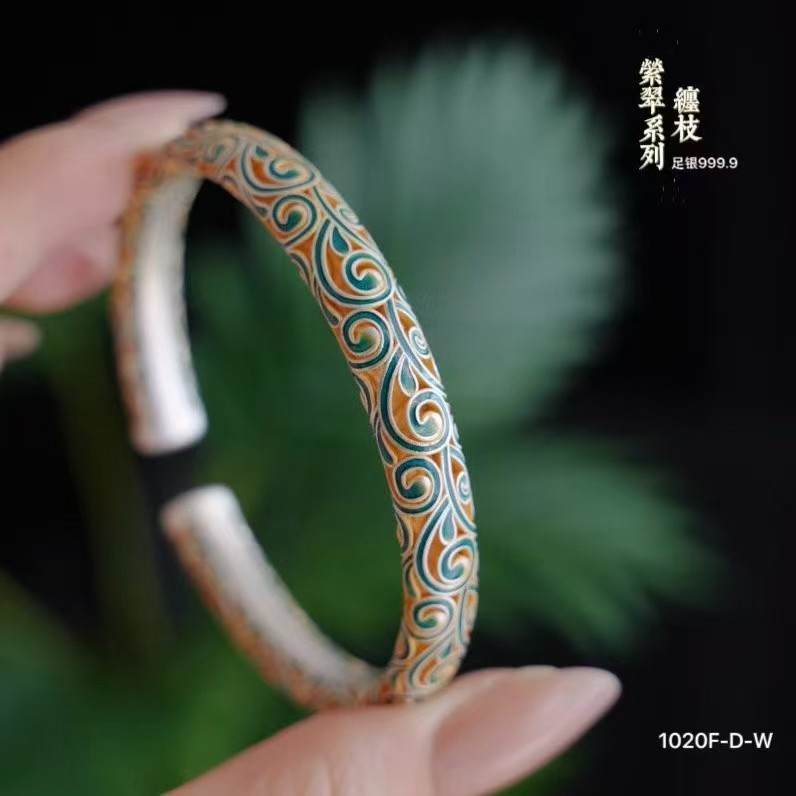 足银999.9缠枝萦翠系列国风描金镂空开口手镯30g戒指5g吊坠13g(预售3-7天发货)