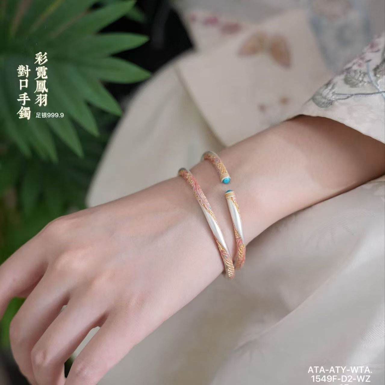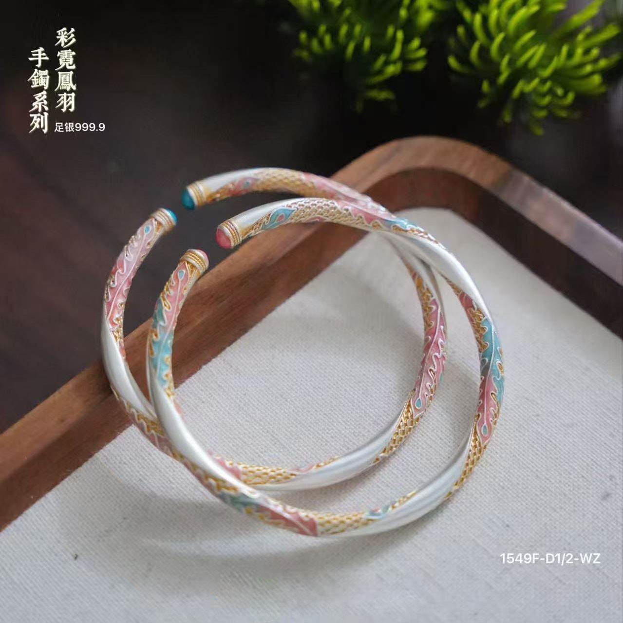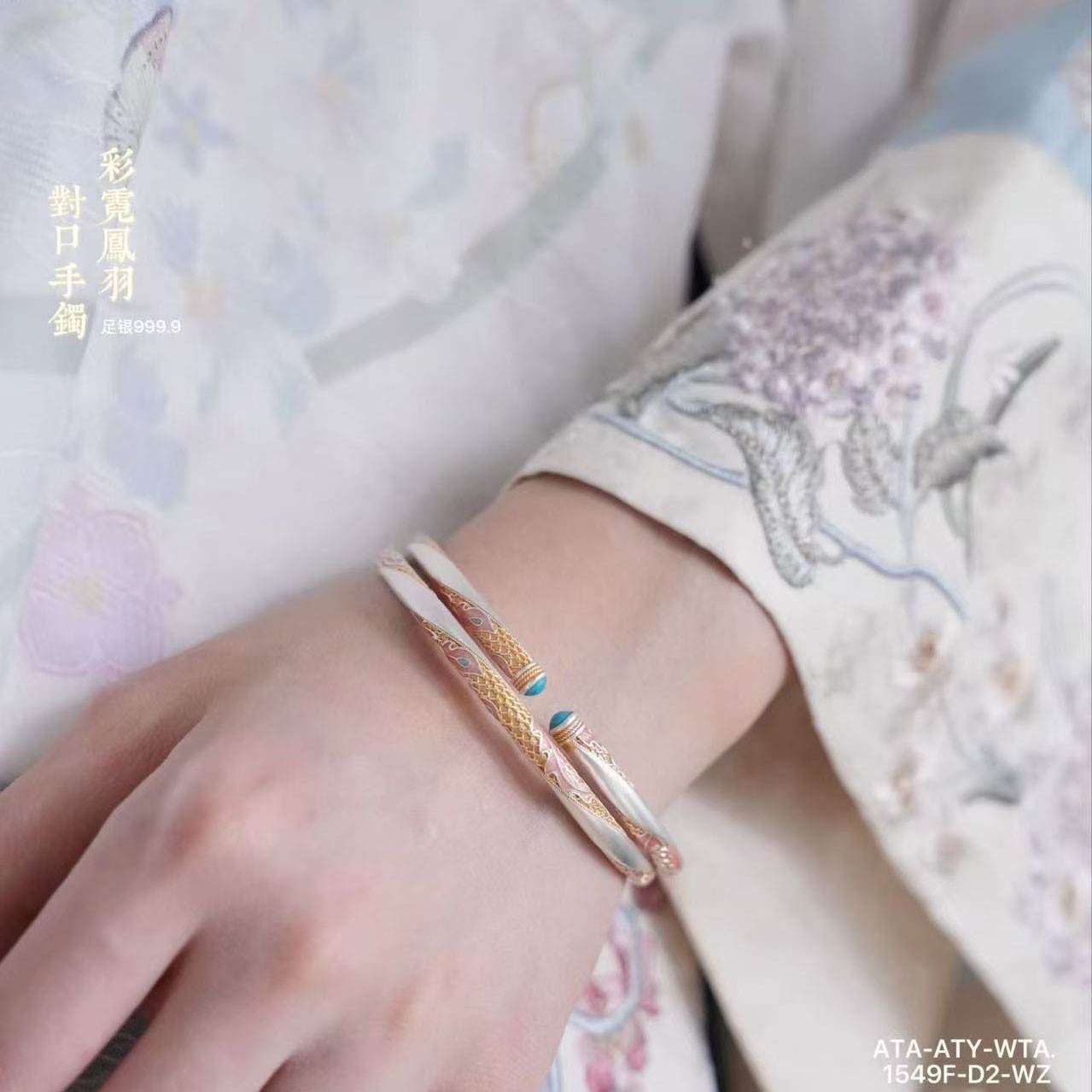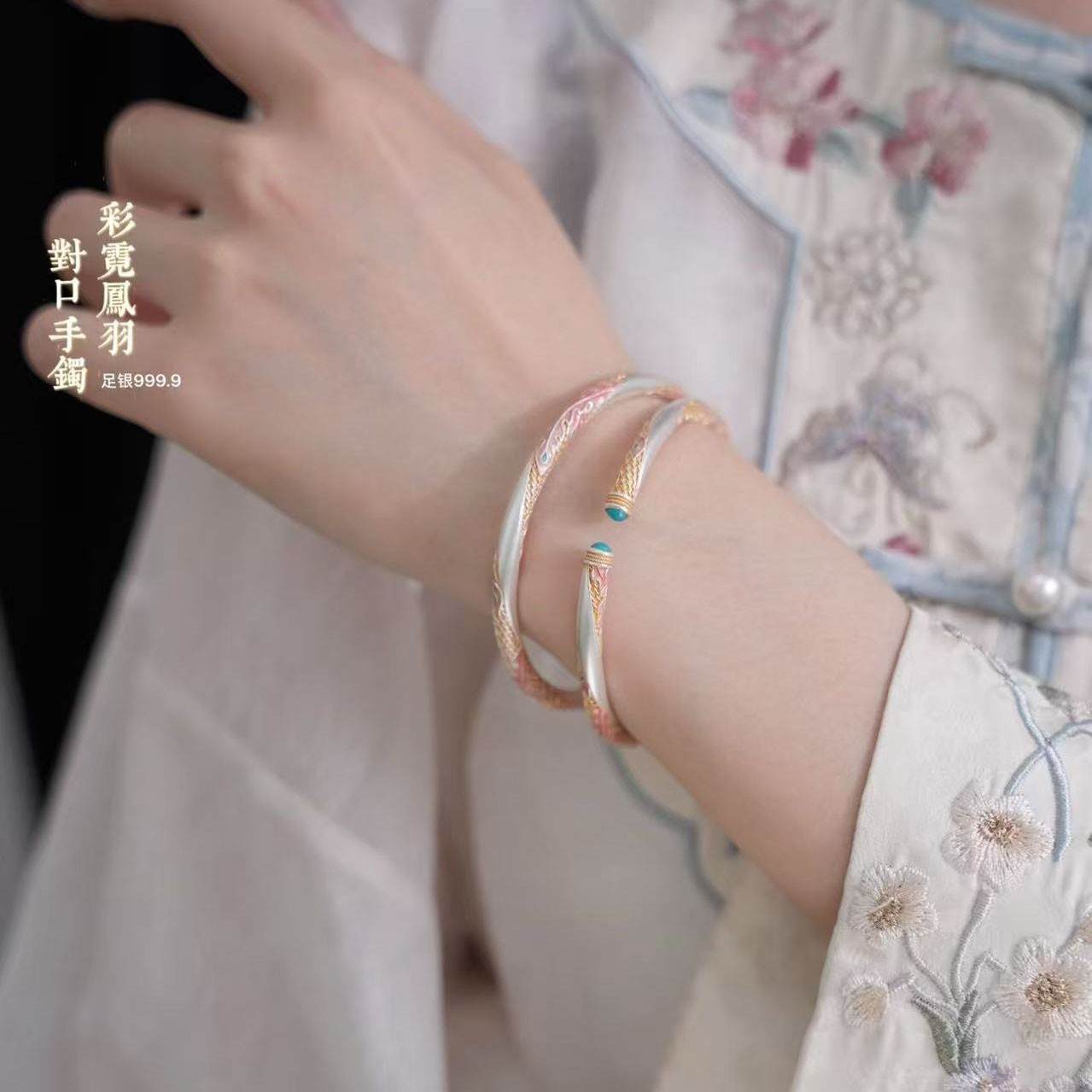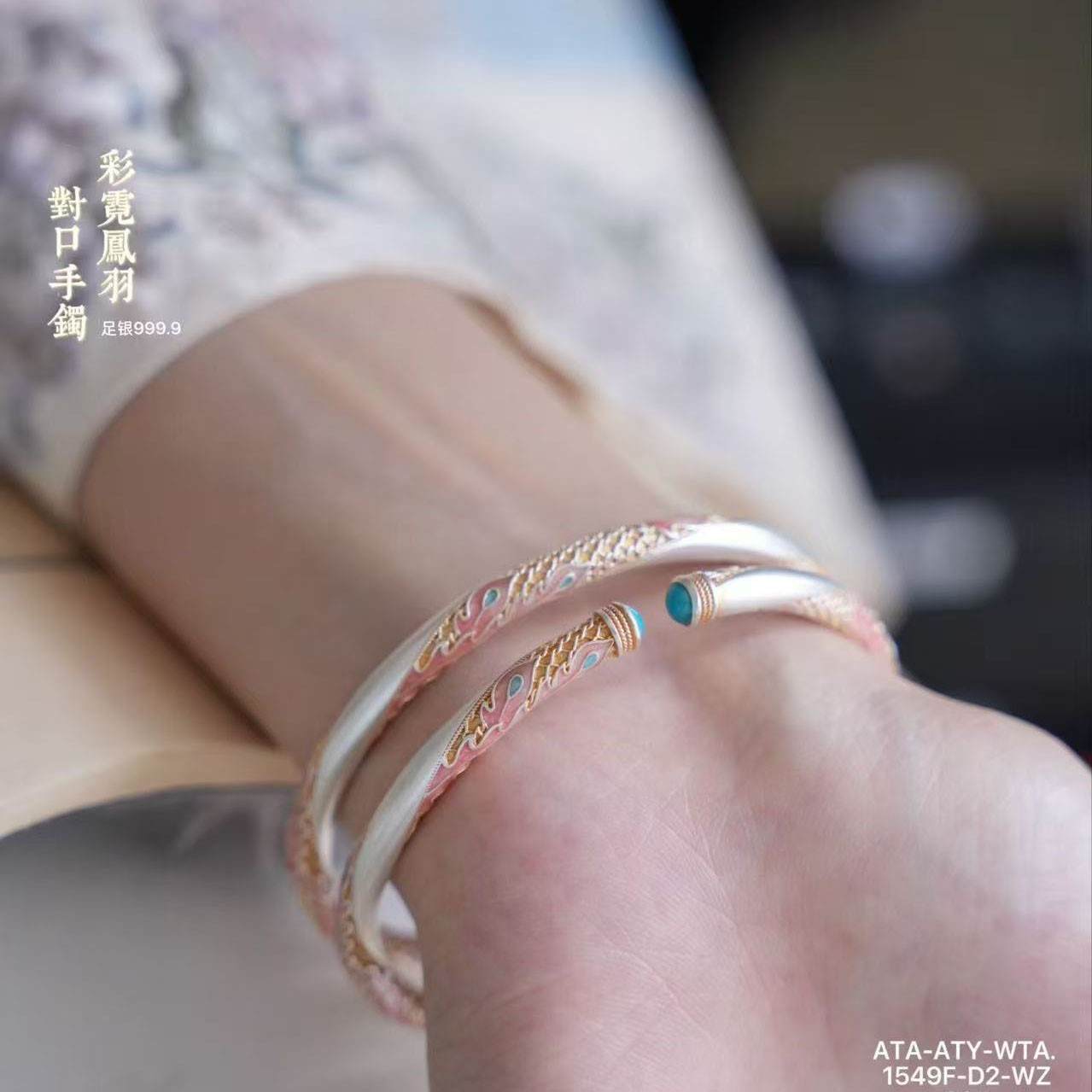 足银999.9彩霓凤羽对口手镯25g(预售3-7天发货)