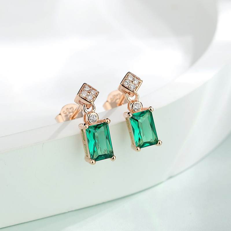 S925银复古仿绿宝石长方形优雅知性耳坠