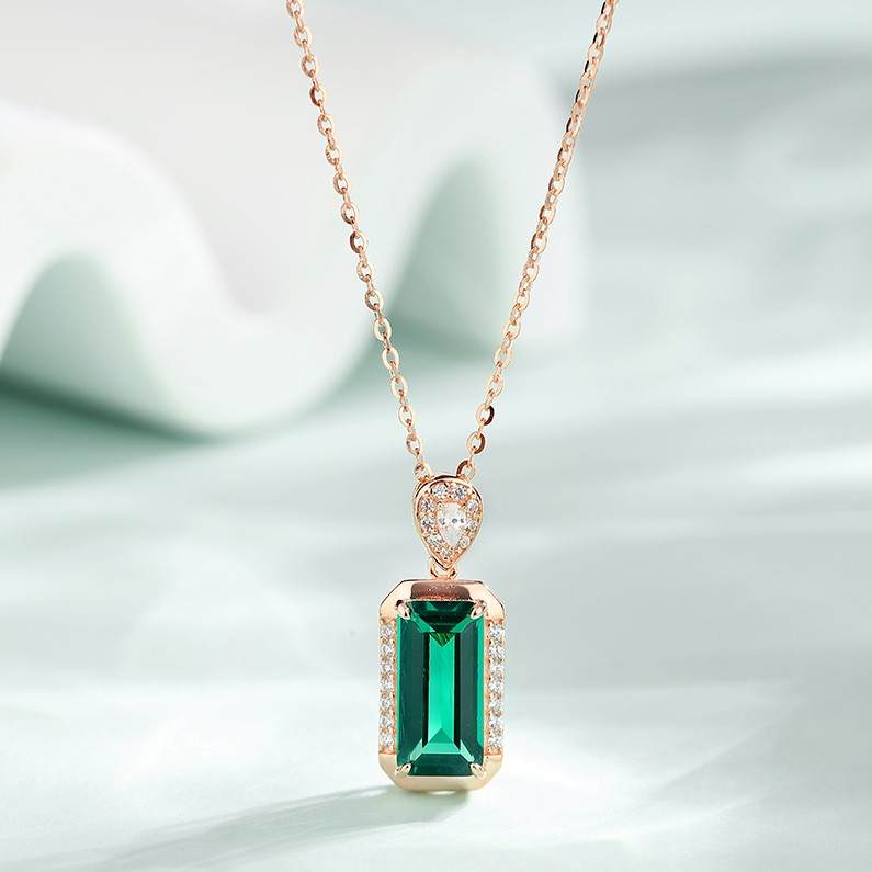 S925银复古绿色长款仿绿宝石精湛切割轻奢套链